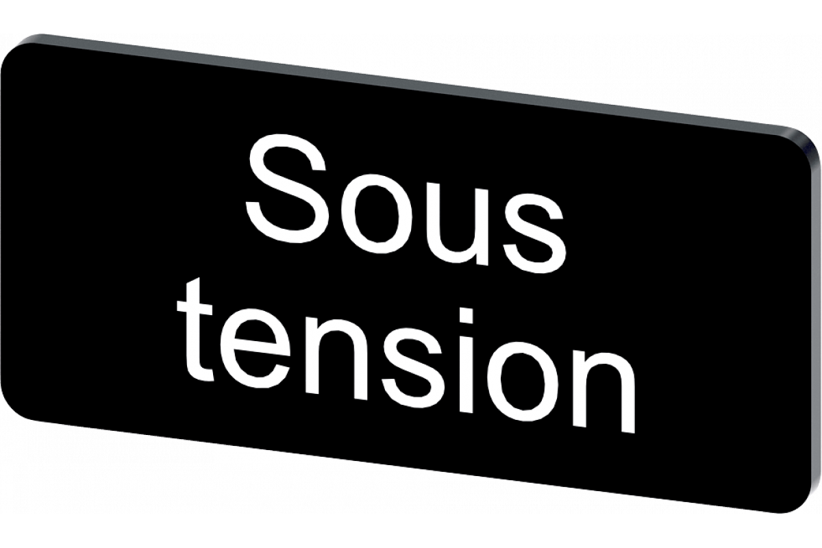 Этикеточная пластина для защелкивания или приклеивания, на держателе этикеток, размер этикетки 12.5x27 мм, черная этикетка, белый шрифт, с надписью: Sous tension