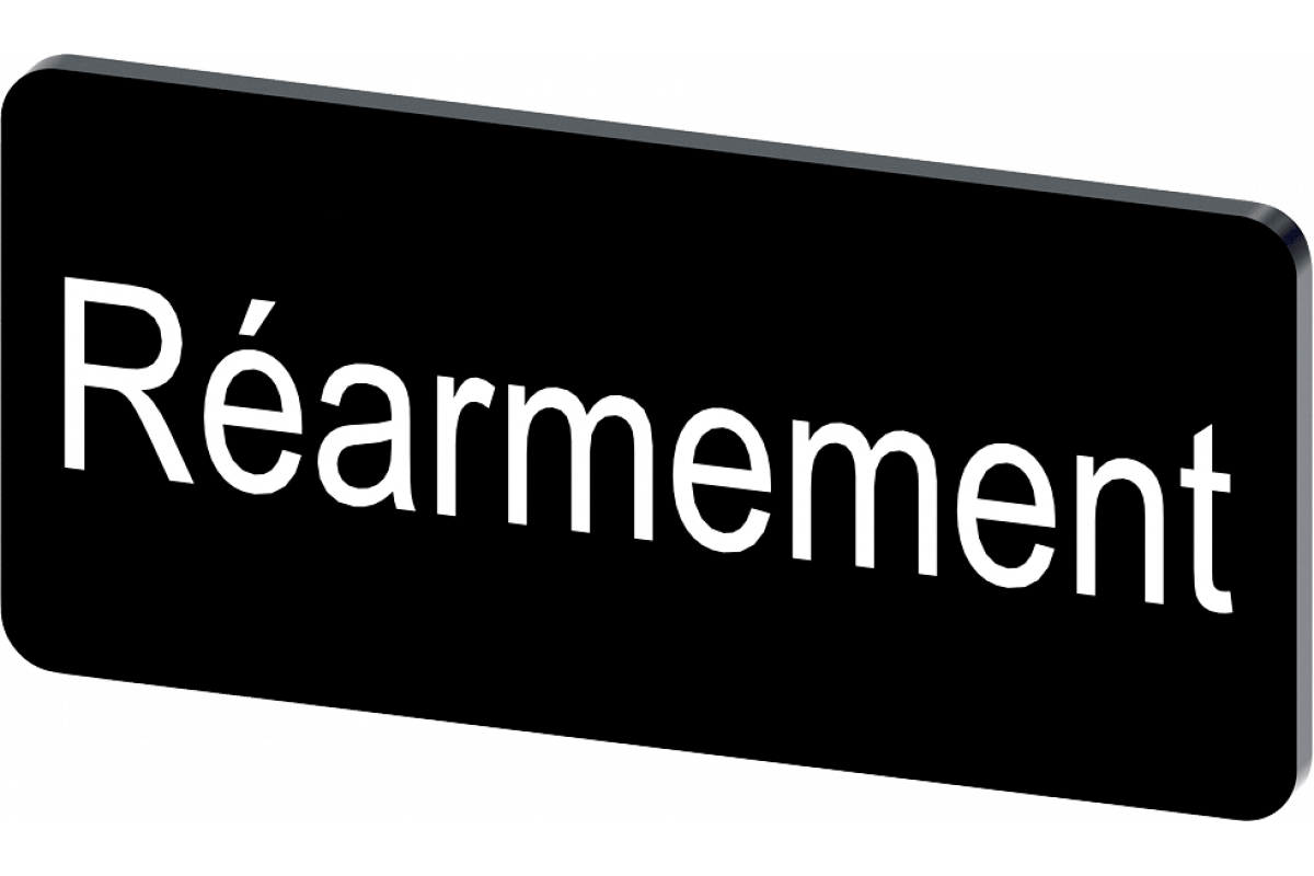 этикеточная пластина для защелкивания или наклеивания на держатель этикетки, размер этикетки 12.5 x 27 мм, черная этикетка, белый шрифт, с надписью: Rearmement
