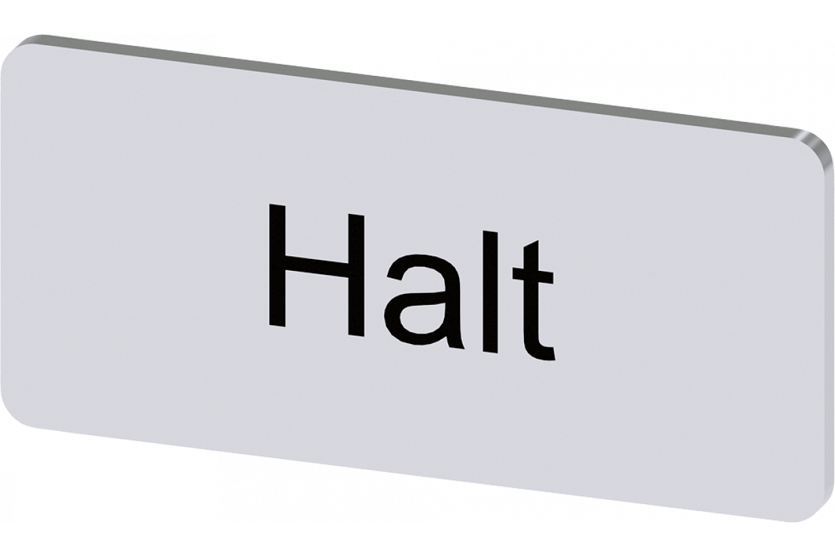 этикеточная пластина для наклеивания или приклеивания, на держателе этикеток, размер этикетки 12.5x27 мм, серебристая этикетка, черный шрифт с надписью: Halt