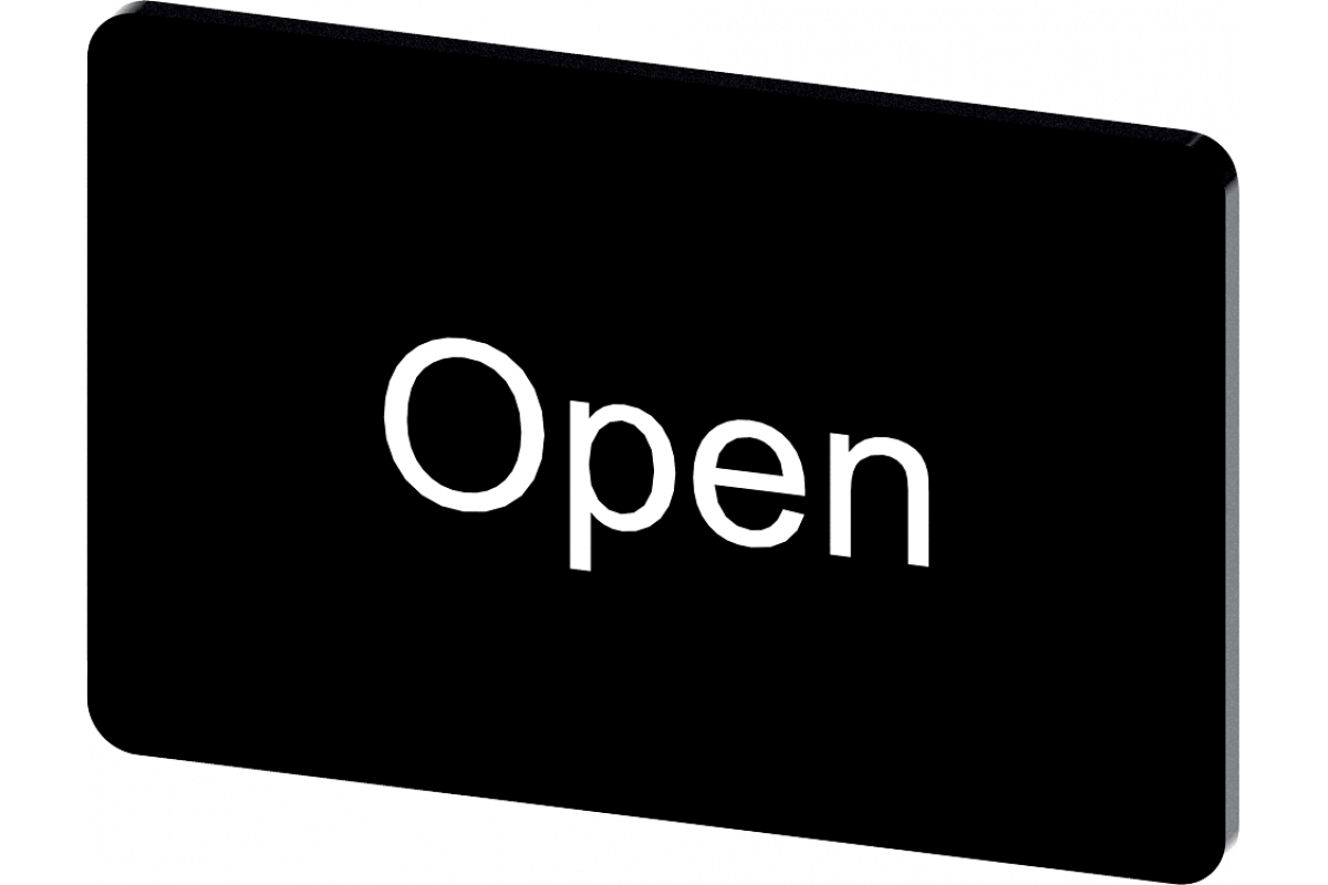 Пластина для наклеивания или приклеивания на держатель этикетки, размер этикетки 17.5 x 27 мм, черная этикетка, белый шрифт, с надписью: Open