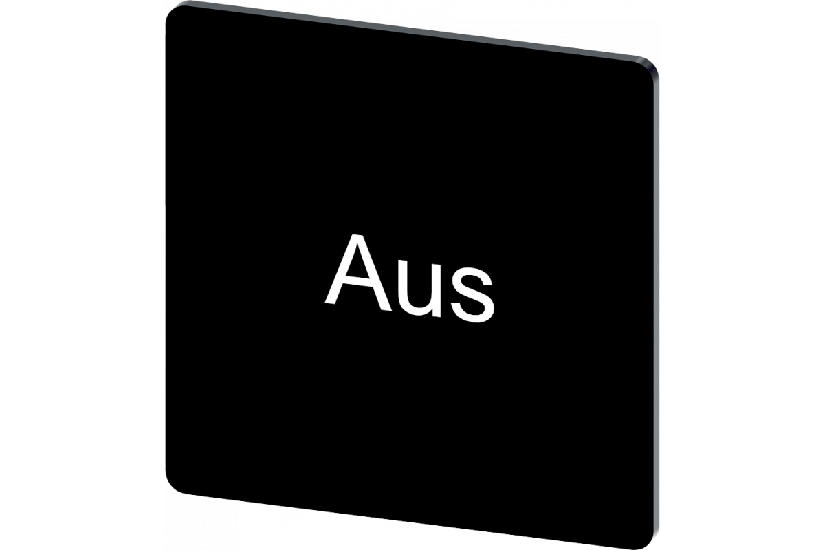 Этикетка для наклеивания или приклеивания, на держателе этикеток, размер этикетки 27x27 мм, черная этикетка, белый шрифт, с надписью: Aus