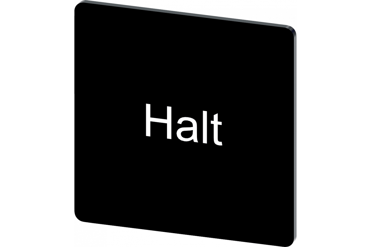 Этикетка для защелкивания или приклеивания, на держателе этикеток, размер этикетки 27 x 27 мм, черная этикетка, белый шрифт, с надписью: Halt