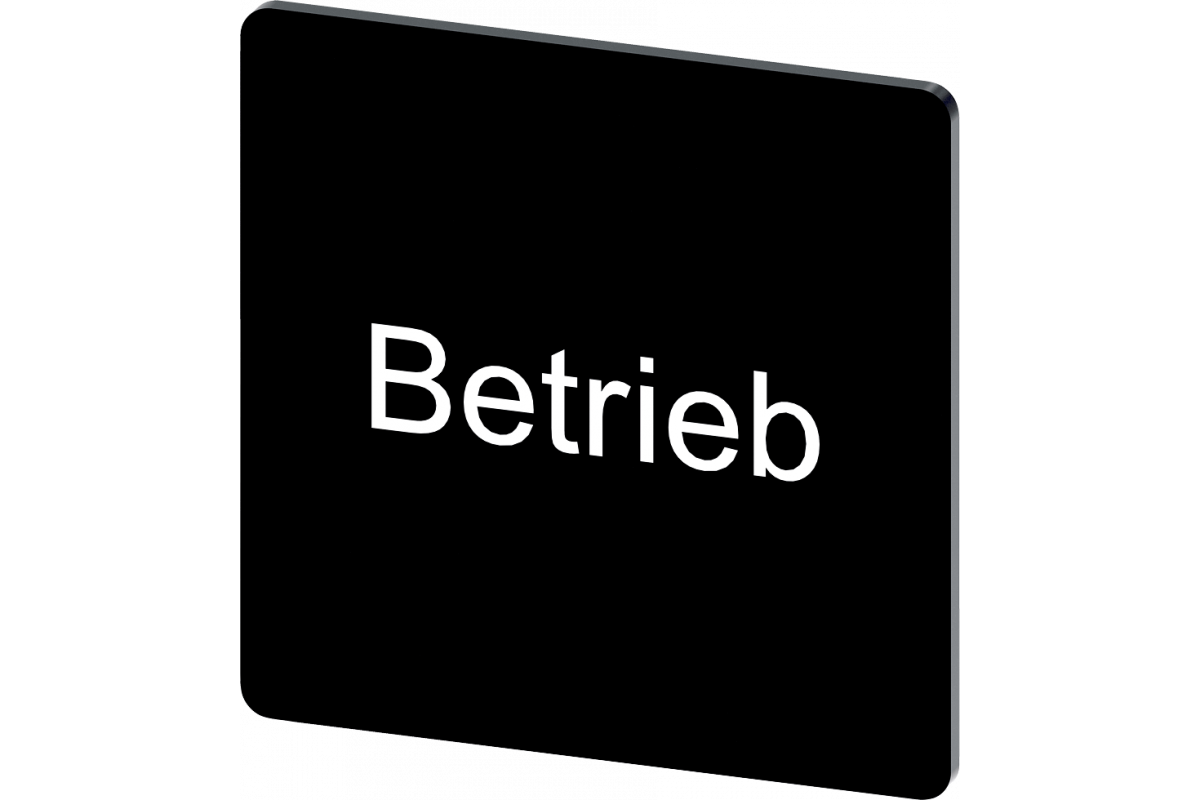 этикеточная пластина для защелкивания или приклеивания, на держателе этикетки, размер этикетки 27x27 мм, черная этикетка, белый шрифт, с надписью: Betrieb