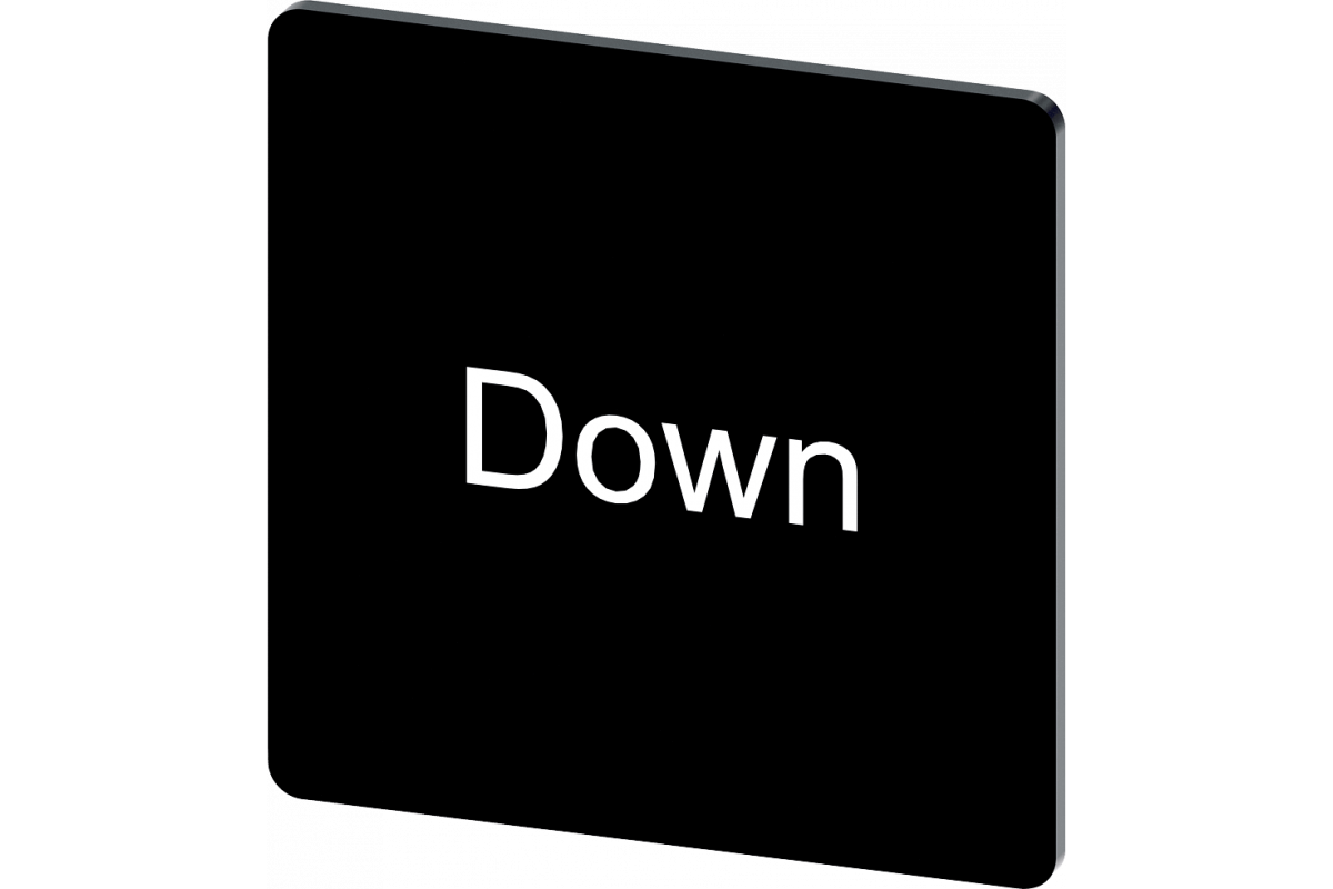 МАРКИРОВОЧНАЯ ТАБЛИЧКА ДЛЯ НАКЛЕИВАНИЯ ИЛИ ЗАЩЕЛКИВАНИЯ НА ДЕРЖАТЕЛЕ, РАЗМЕР 27 X 27MM, ЧЕРНАЯ, НАДПИСЬ БЕЛАЯ, С МАРКИРОВКОЙ: DOWN