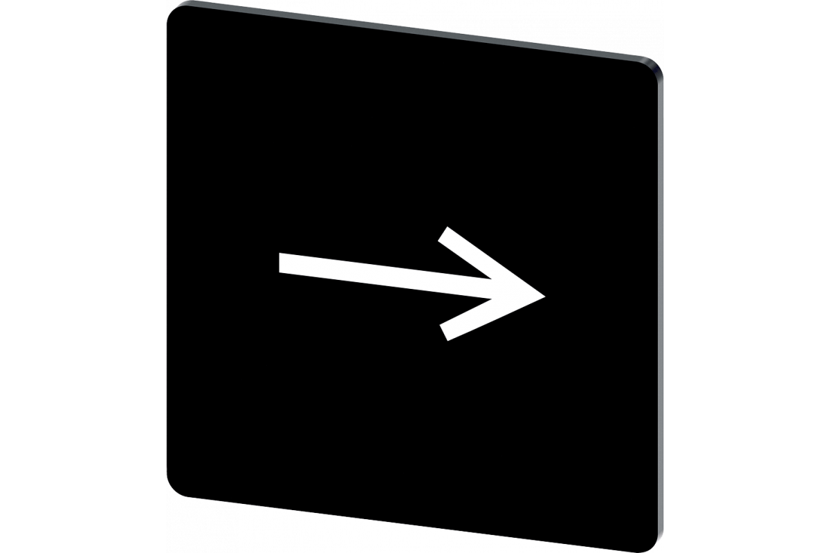 этикеточная пластина для наклеивания или приклеивания на держатель этикеток, размер этикетки 27x27 мм, черная этикетка, белый шрифт, с графическим символом: стрелка, направленная вправо