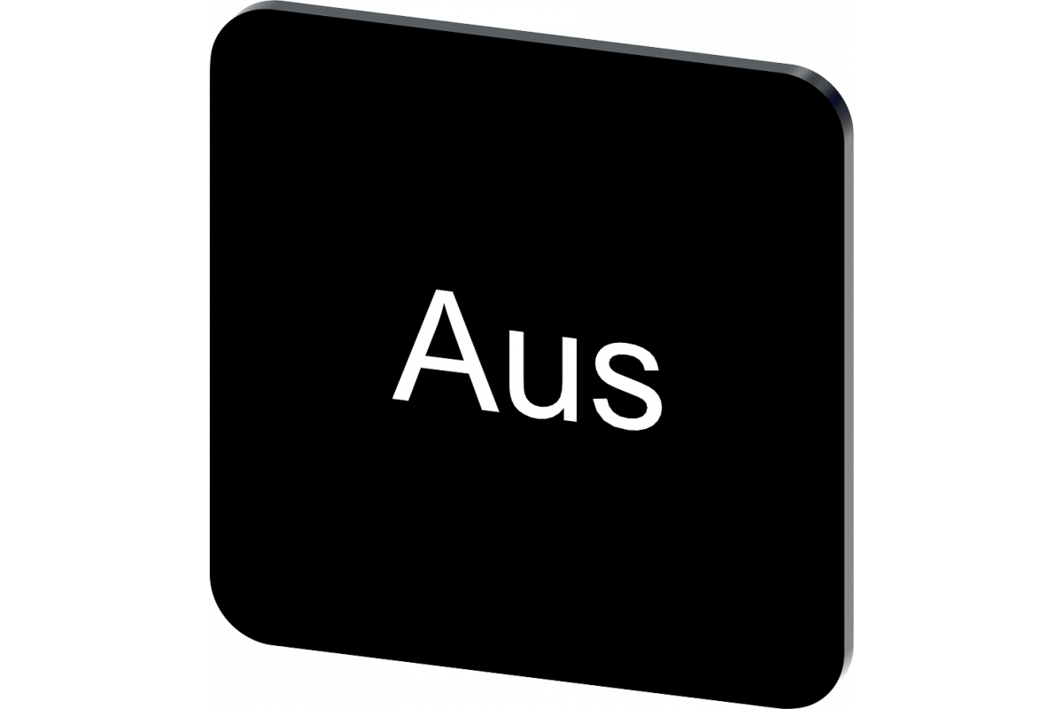 этикеточная пластина для наклеивания на корпус, размер этикетки 22x22 мм, черная этикетка, белый шрифт, с надписью: Aus