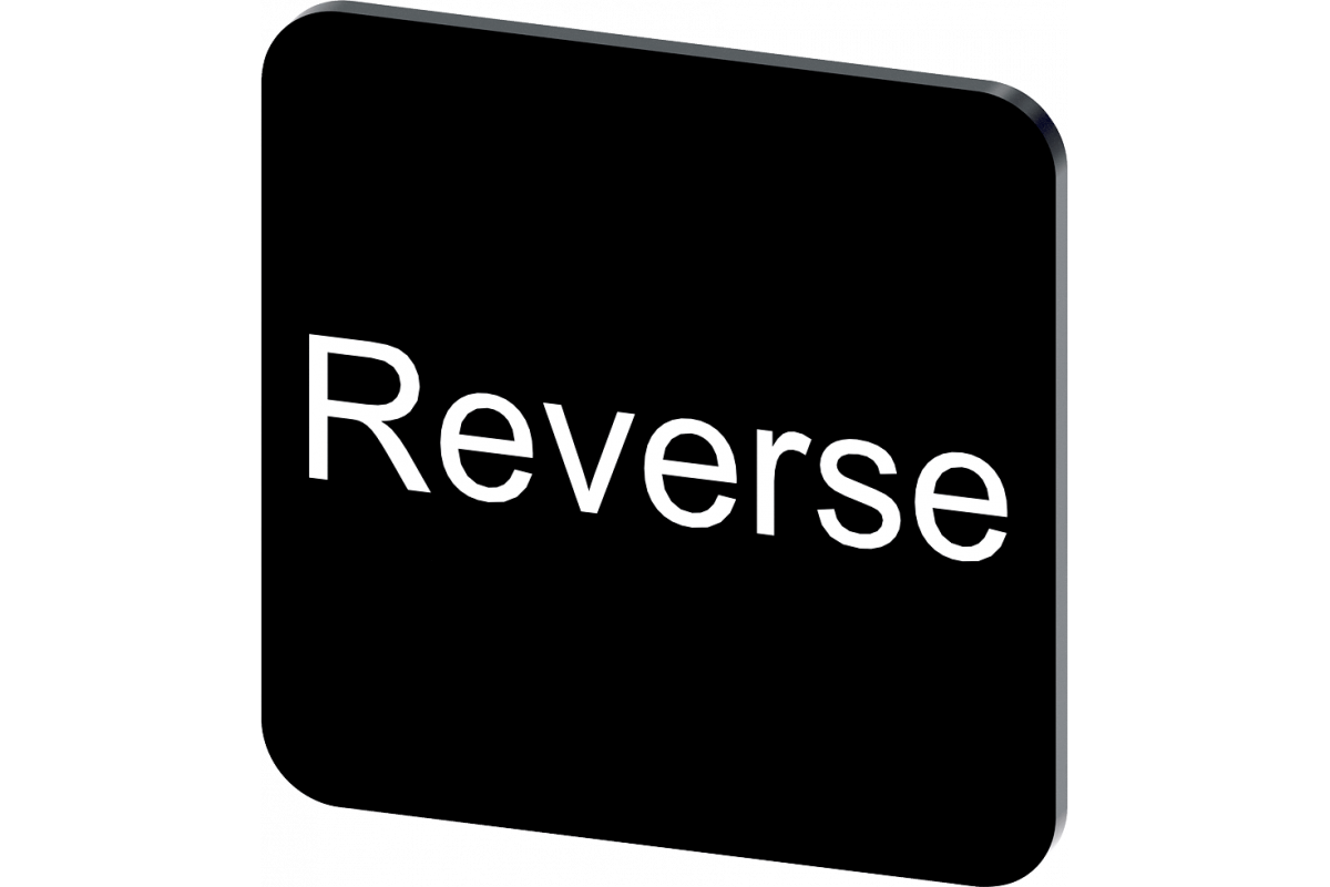 Этикетка для наклеивания на корпус, размер этикетки 22x22 мм, черная этикетка, белый шрифт, с надписью: Реверс