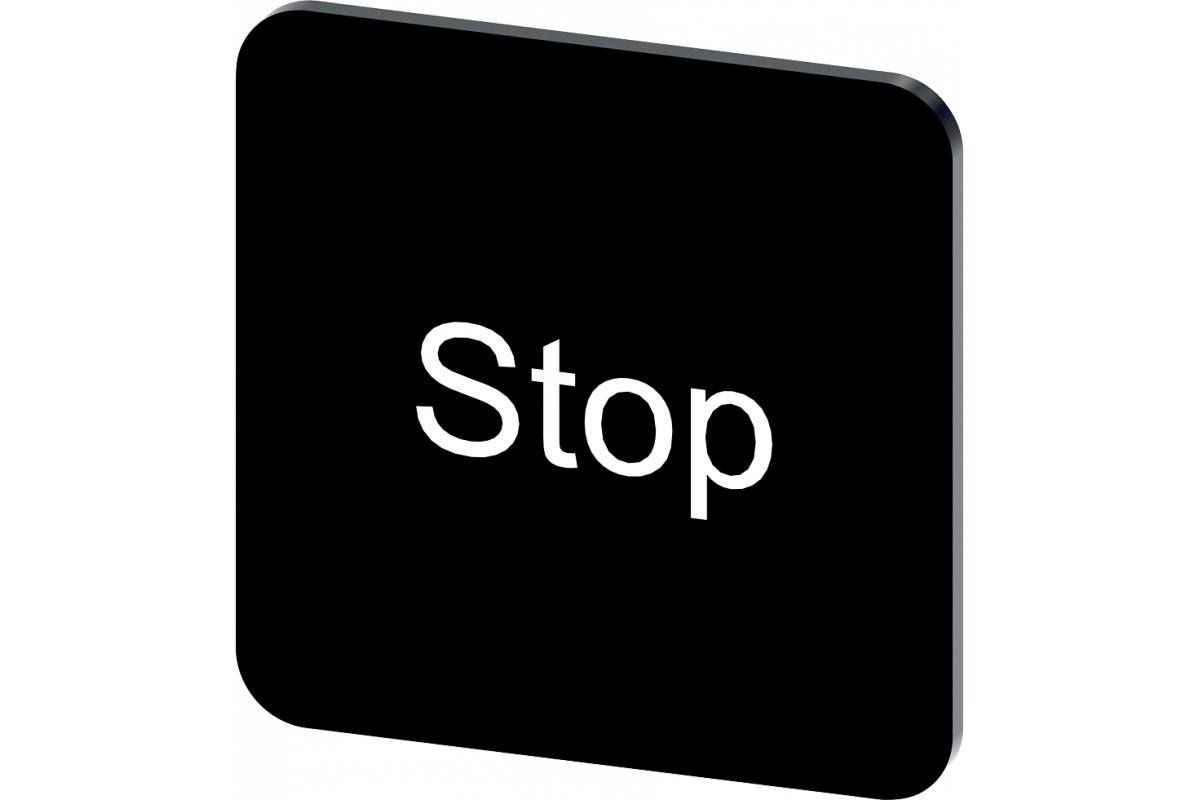 Этикетка для наклеивания на корпус, размер этикетки 22x22 мм, черная этикетка, белый шрифт, с надписью: Стоп
