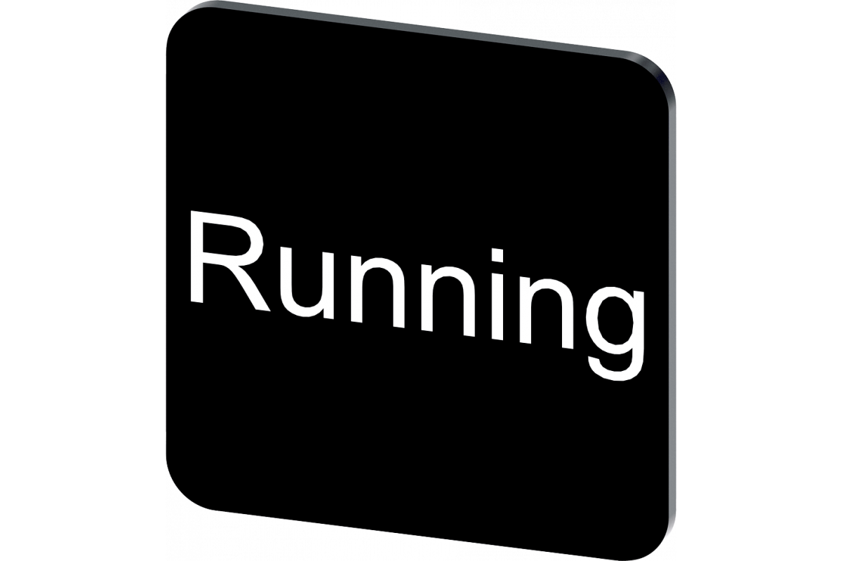 Этикетка для наклеивания на корпус, размер этикетки 22x22 мм, черная этикетка, белый шрифт, с надписью: Running