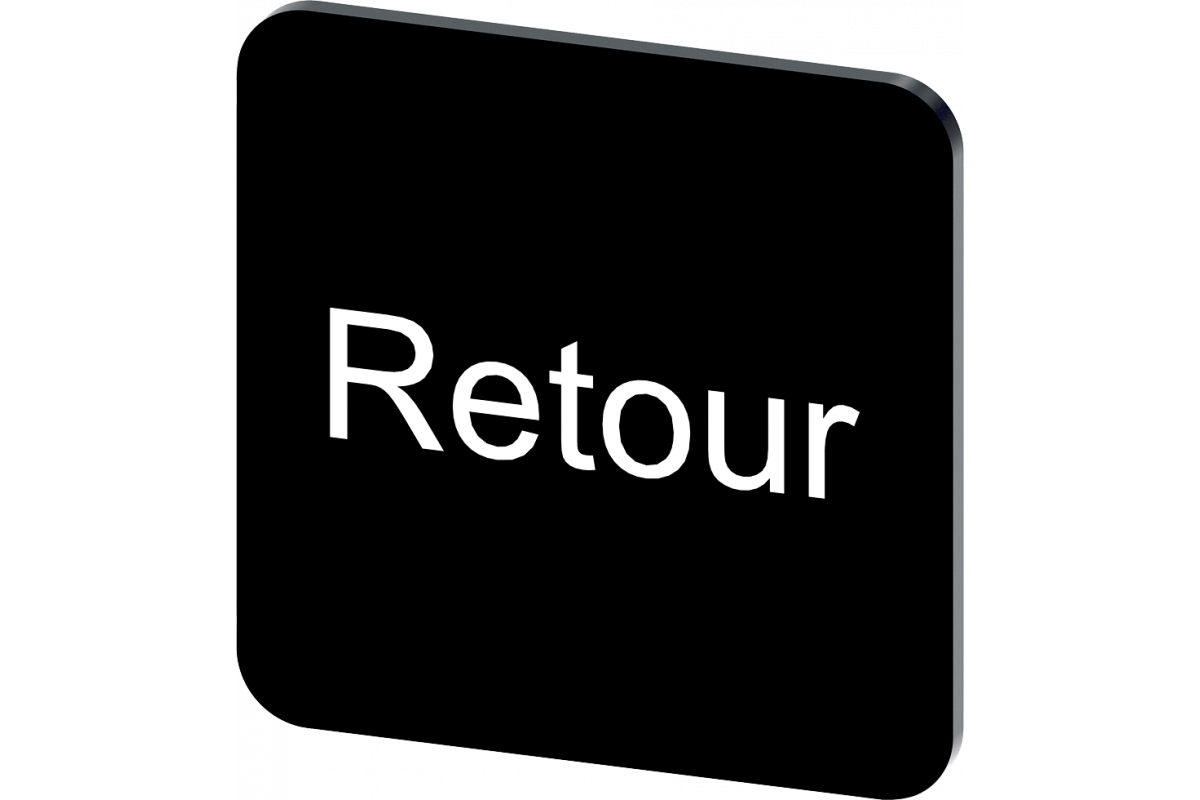 Этикетка для наклеивания на корпус, размер этикетки 22x22 мм, черная этикетка, белый шрифт, с надписью: Retour