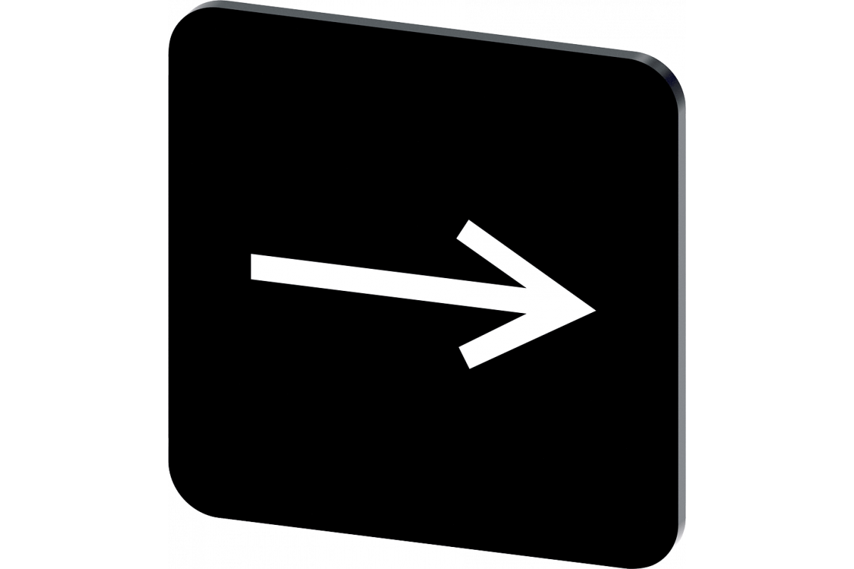 этикетка для наклеивания на корпус, размер этикетки 22x22 мм, черная этикетка, белый шрифт, с графическим символом: стрелка, направленная вправо