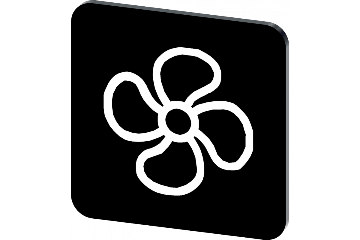 Этикетка для наклеивания на корпус, размер этикетки 22x22 мм, черная этикетка, белый шрифт, с символом: вентилятор