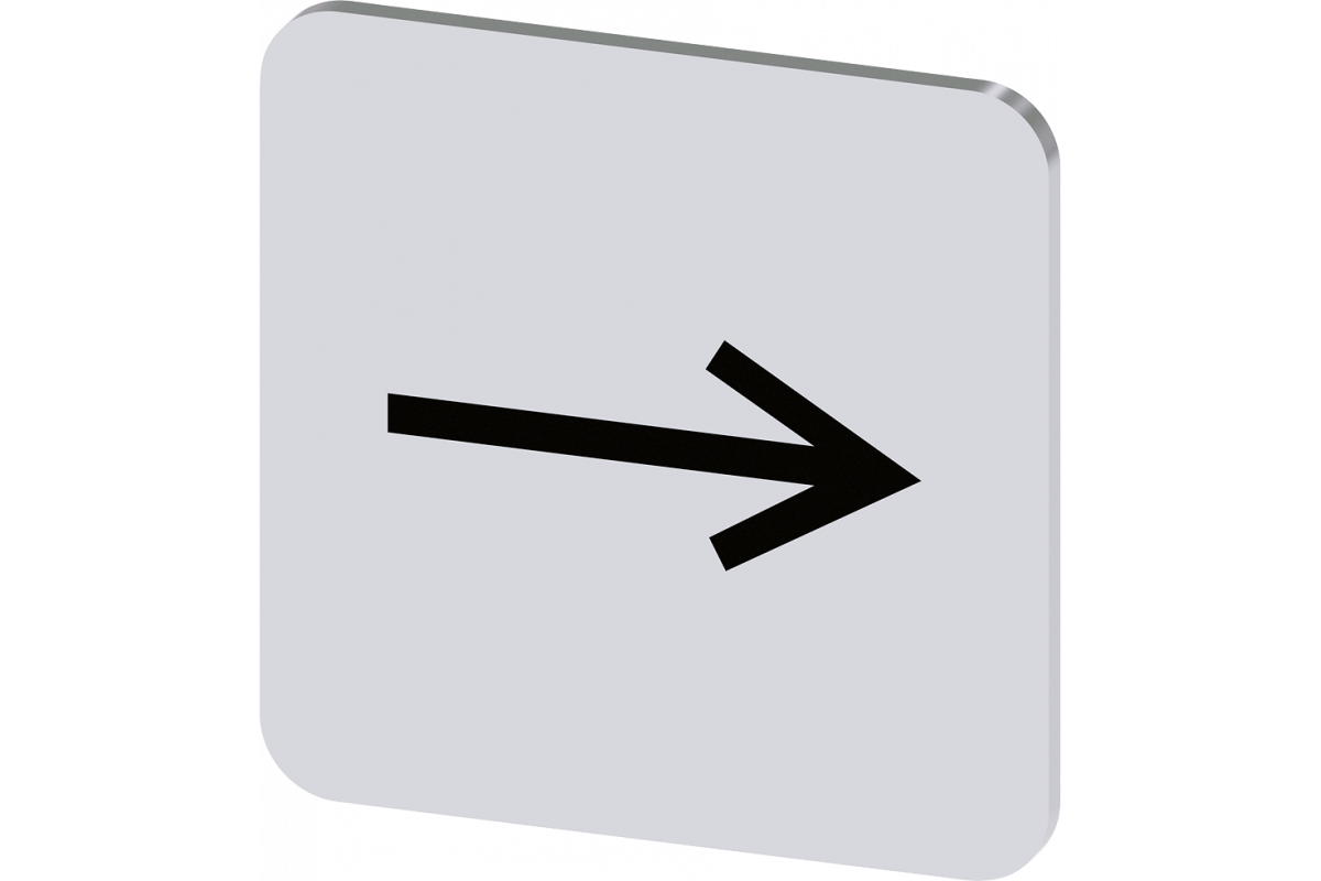 Этикетка для наклеивания на корпус, размер этикетки 22x22 мм, серебристая этикетка, черный шрифт, с графическим символом: стрелка, направленная вправо