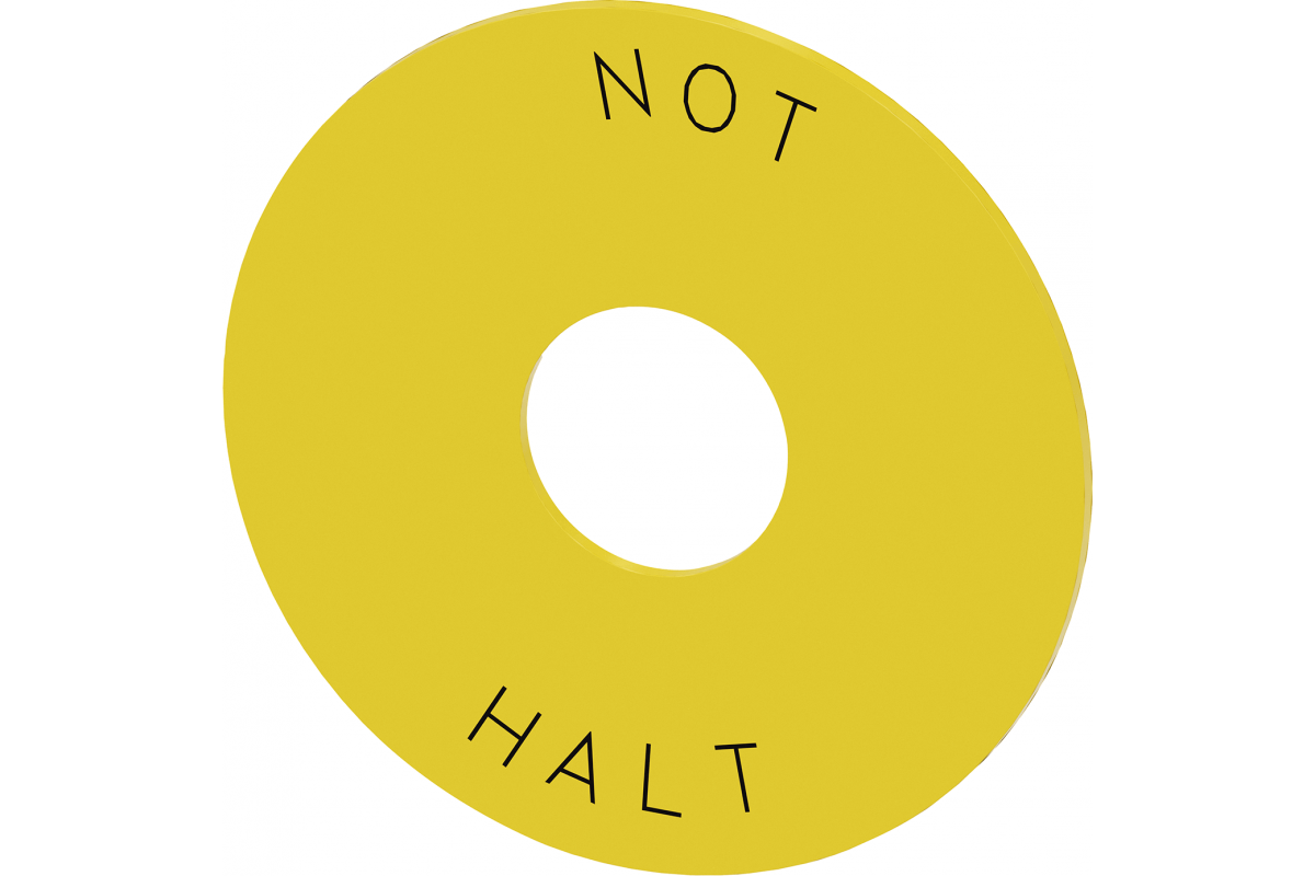 Шайба для аварийной остановки, желтая, с надписью: NOT-HALT, внешний диаметр 75 мм, внутренний диаметр 22.5 мм, толщина 2 мм