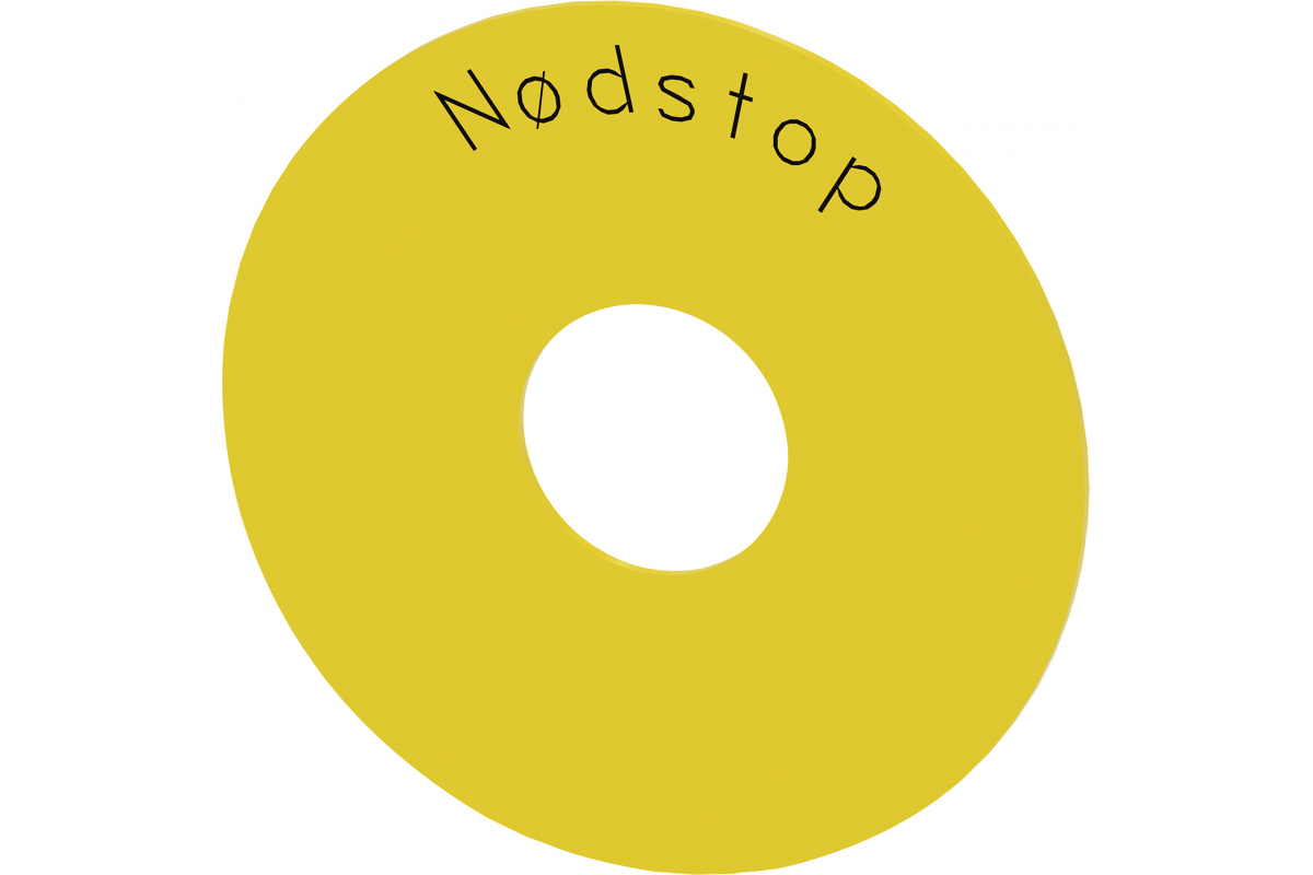 Подложка круглая, для грибовидной кнопки EMERGENCY STOP, желтая, самоклеющаяся, внешний диаметр 75 мм, внутренний диаметр 23 мм, с надписью: Nodstop