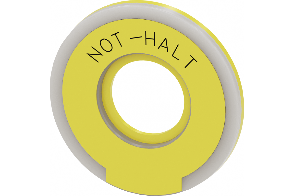 Шайба круглая для грибовидной кнопки EMERGENCY STOP, желтая, с подсветкой, толщина 5 мм, внешний диаметр 60 мм, внутренний диаметр 23 мм, с надписью: NOT-HALT