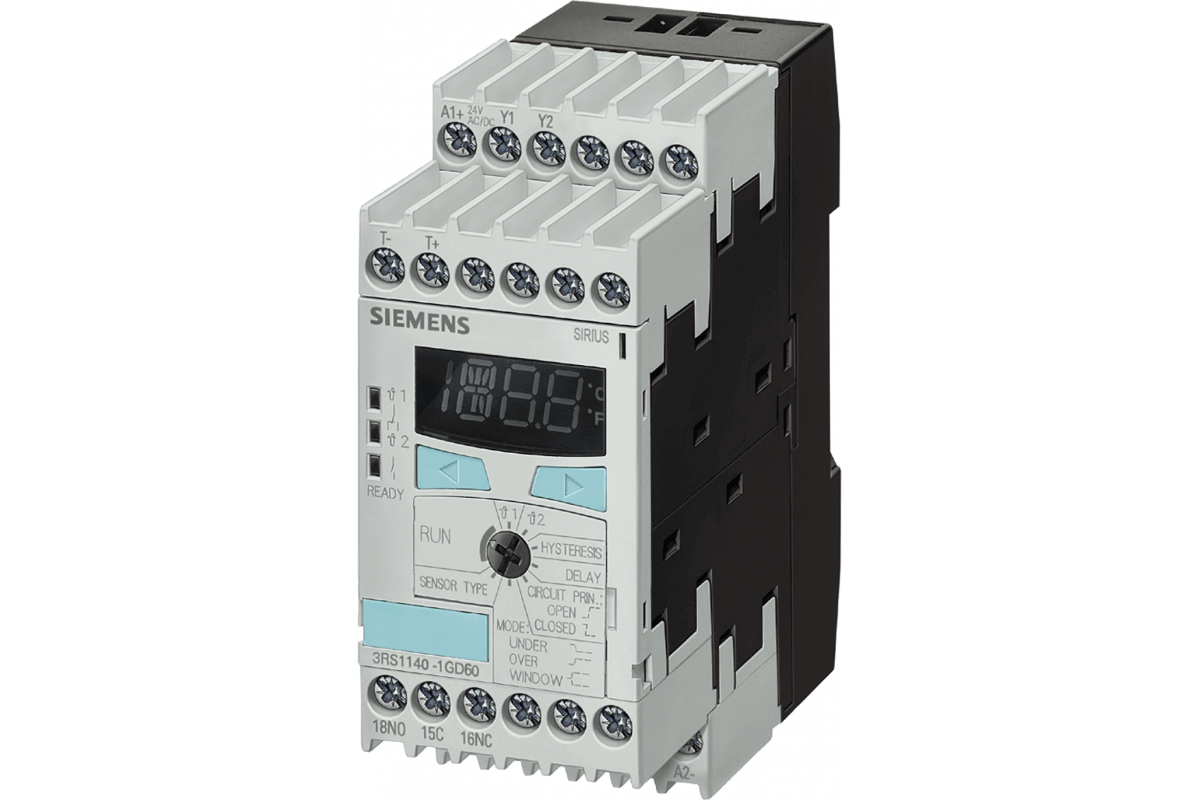 реле контроля температуры Термопара J, T, E, K, N 2 пороговых значения с цифровой регулировкой от -99 °F до 1830 °F 24 - 240 В AC/DC 2 x 1 CO + 1 NO, ширина 45 мм пружинная клемма !!!фазированное изделие!!! предпочтительным преемником является 3RS2600-2BW30
