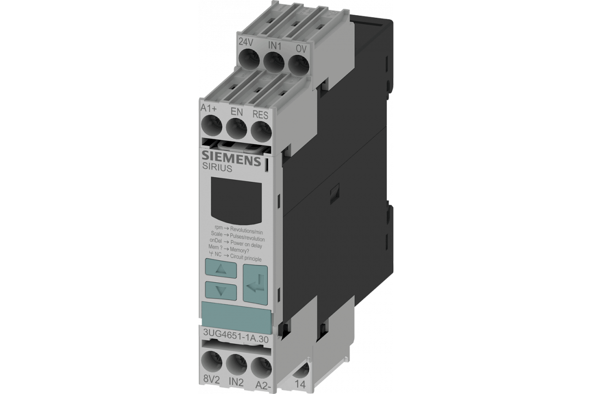 РЕЛЕ КОНТРОЛЯ (ЦИФР. ПАРАМЕТРИРОВАНИЕ) SPEED MONITORING ОТ 0.1 ДО 2200 REV/MIN ПРЕВЫШЕНИЕ И ПОНИЖЕНИЕ AC/DC 24 ДО 240V DC И AC 50 TO 60 ГЦ STARTUP DELAY 1 TO 900S TRIPPING DELAYED 0.1 TO 99.9S HYSTERESIS 0.1 TO 99 REV/MIN 1 П КОНТАКТ C OR W/O ERROR LOG ВИНТОВЫЕ КЛЕММЫ REPLACEMENT PRODUCT F. 3UG3051