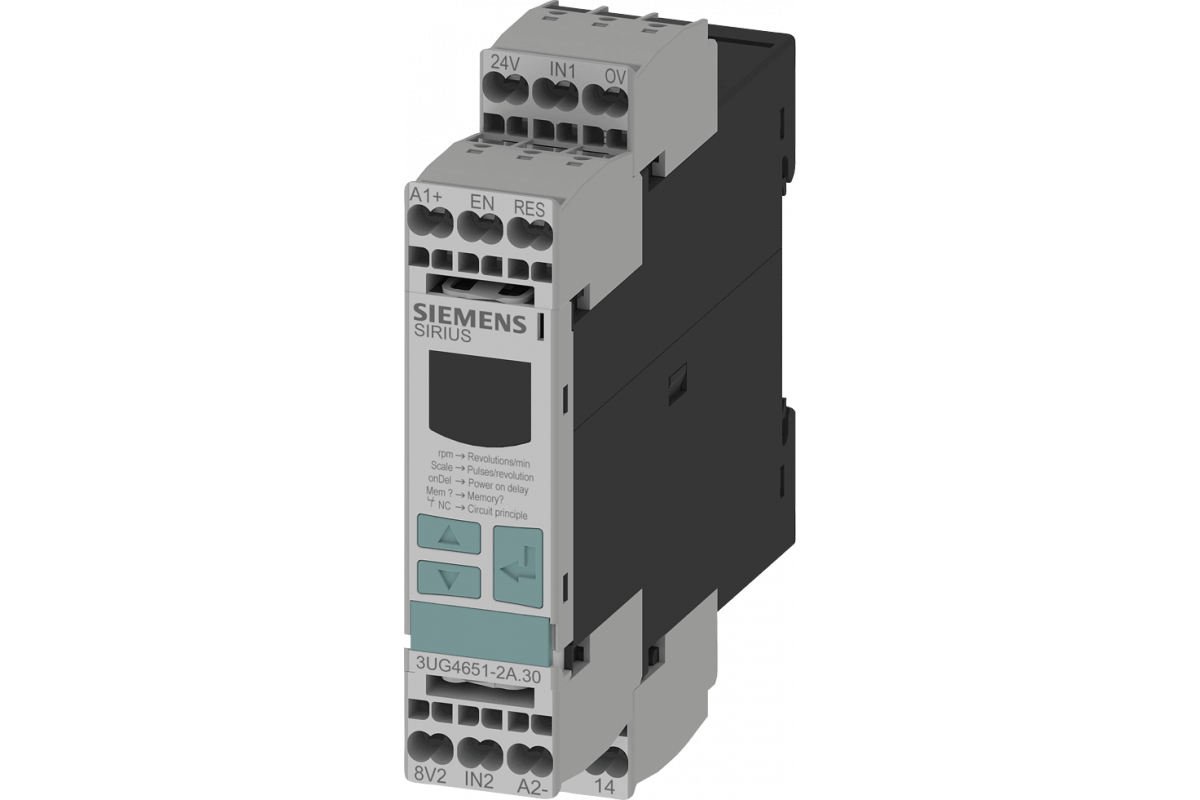 Цифровое реле контроля Контроль скорости от 0.1 до 2200 об/мин 0версхоут и недосхоут Напряжение питания: 24 В AC/DC 50-60 Гц DC и AC без гальванической развязки с измерительной цепью Задержка включения 1 до 900 с Задержка отключения 0.1 - 99.9 с Гистерезис 0.1 - 99 об/мин 1 переключающий контакт с буферной пружинной системой подключения или без нее