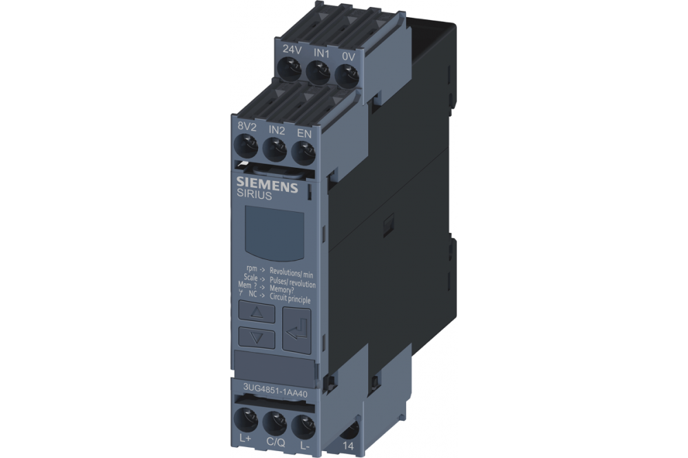 Цифровое реле контроля Контроль скорости для IO-Link от 0.1...2200 об/мин 0 разгон и торможение Время задержки включения Время задержки срабатывания Гистерезис 0.1 до 99 об/мин 1 переключающий контакт, винтовая клемма