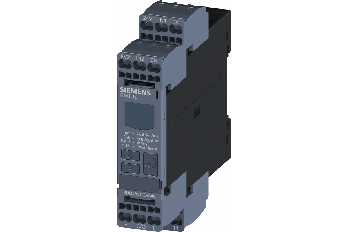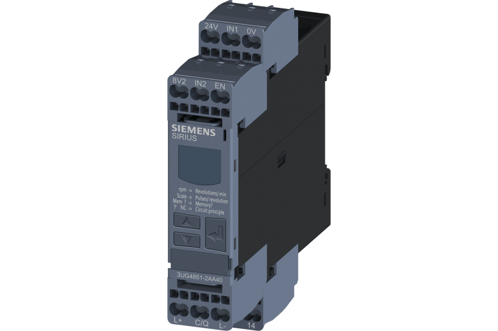 Цифровое реле контроля устройство контроля скорости вращения для io-link 0,1–2200 об/мин превышение и недостижение время задержки пуска время задержки срабатывания гистерезис от 0,1 до 99 об/мин 1 переключающий контакт, пружинные клеммы