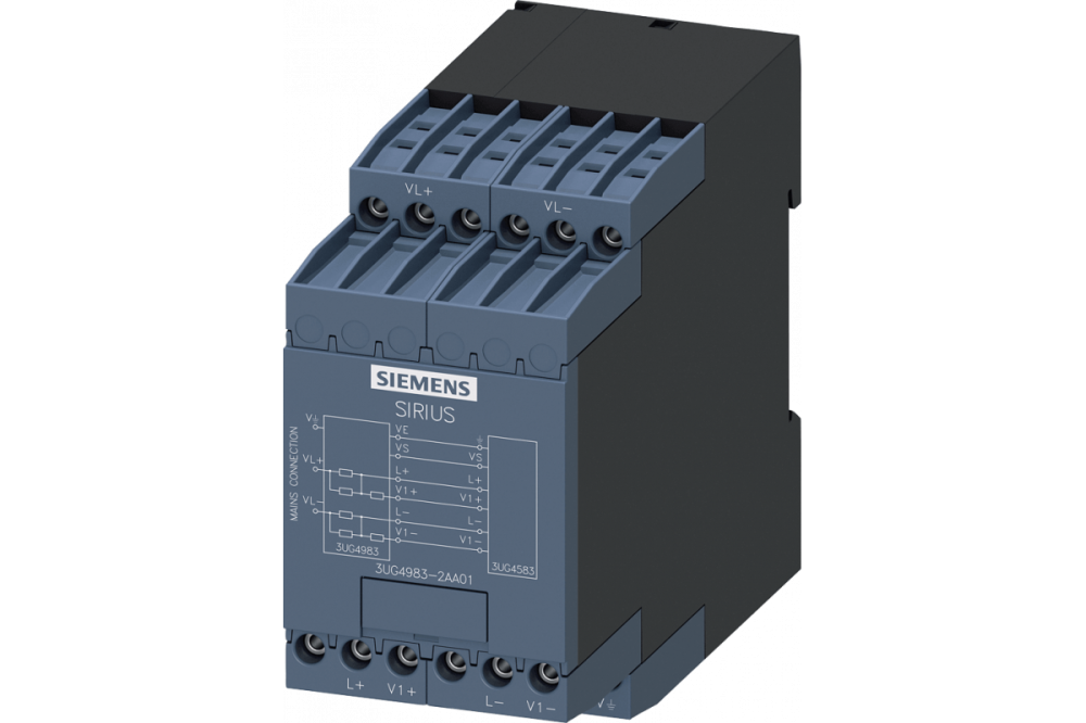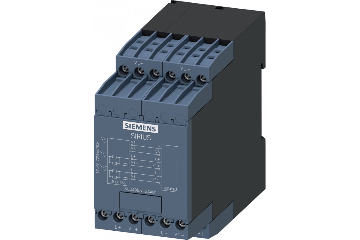 Модуль редуктора напряжения для реле контроля изоляции 3UG4583 для расширения диапазона напряжения питания до 690 В переменного тока и 1000 В постоянного тока подпружиненная клемма (вставка)