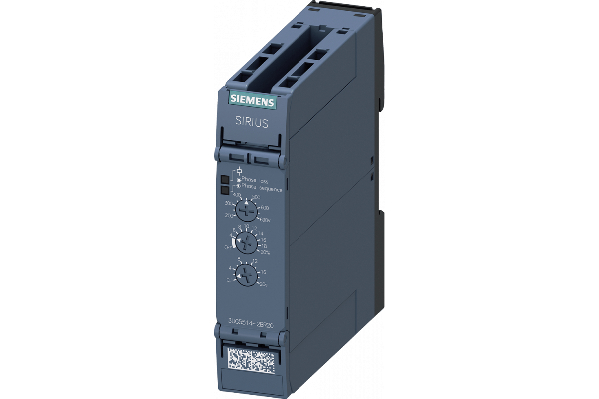 аналоговое реле контроля регулировки обрыв фазы, последовательность фаз, асимметрия и пониженное напряжение контроль 3x 160-690 В переменного тока, 15-70 Гц 2 переключающих контакта пружинный зажим