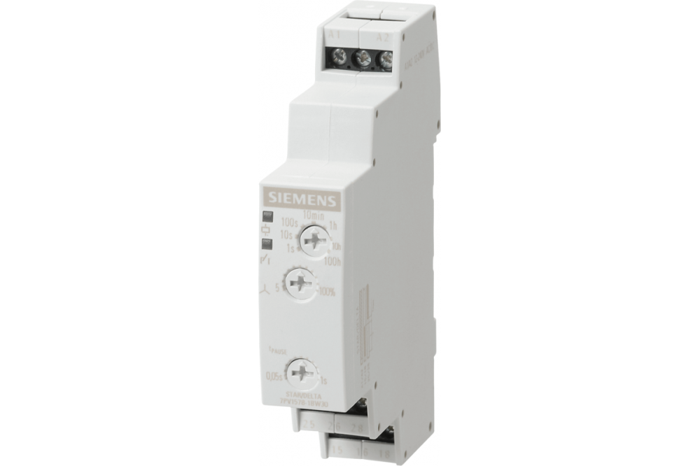 ЭЛЕКТРОННОЕ РЕЛЕ ВРЕМЕНИ, ФУНКЦИЯ "ЗВЕЗДА-ТРЕУГОЛЬНИК", 2 НО КОНТАКТА, 7 ДИАПАЗОНОВ УСТАВОК ВРЕМЕНИ 0.05 С. … 100 Ч., US 12 … 240 В AC/DC, СВЕТОДИОДНАЯ ИНДИКАЦИЯ, ВИНТОВЫЕ КЛЕММЫ