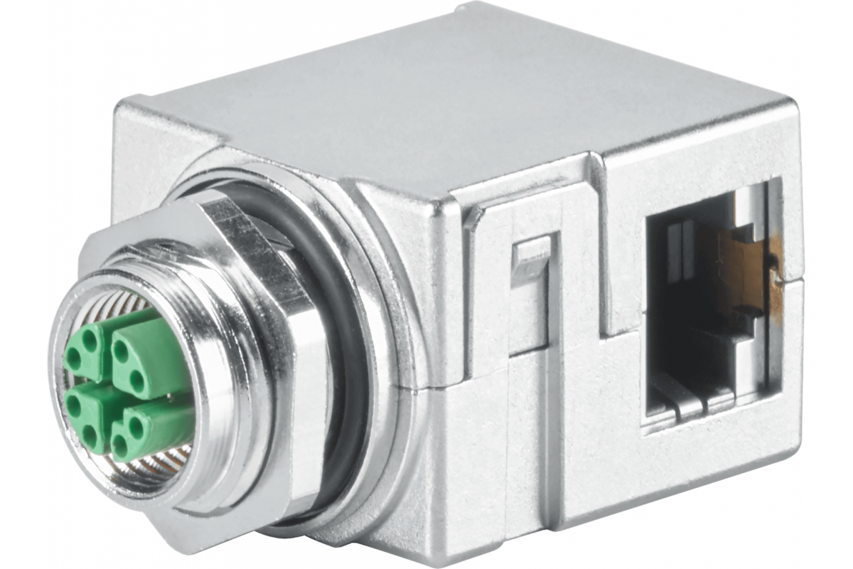 IE M12 проходной изолятор для панели управления 4x 2 для перехода с системы подключения M12 (X-coded) IP65/67) на систему подключения RJ45 IP20 1 упаковка = 5 единиц,