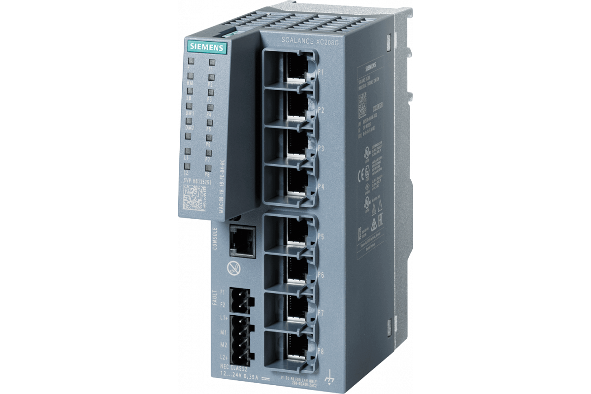 SCALANCE XC208G (Е / IP) промышленный управляемый IE коммутатор 2-го уровня; 8х электрических RJ45 портов 10/100/1000 Мбит/с; 1x консольный порт; светодиодная индикация; резервированное питание 24В; расширенный температурный диапазон (от -40°C до +70°C), монтаж на DIN-рейку/S7 профили/стену; функции резервирования; офисные функции (RSTP, VLAN, .. .); PROFINET IO устройство, Ethernet/IP-совместимость, слот для С-PLUG; EtherNet/IP ПО умолчанию.