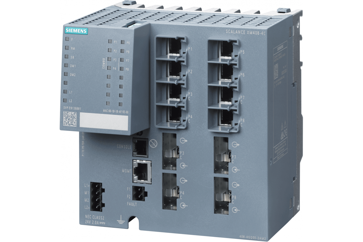 SCALANCE XM408-4C, УПРАВЛЯЕМЫЙ МОДУЛЬНЫЙ КОММУТАТОР IE, 8 портов RJ45 10/100/1000 Мбит/с, 4 порта ST-/SC- 100/1000 Мбит/с, ПОДКЛЮЧАЕМЫЕ КАК КОМБИНИРОВАННЫЕ ПОРТЫ, 8 ИСПОЛЬЗУЕМЫХ ПОРТОВ ВСЕГО, ВОЗМОЖНО РАСШИРЕНИЕ ДО 24 ПОРТОВ ЭЛЕКТРИЧЕСКИХ ИЛИ ОПТИЧЕСКИХ, УРОВЕНЬ 3 С ДОСТУПНЫМ КЛЮЧЕВЫМ ШТЕКЕРОМ, МОНТАЖ НА ПРОФИЛЬНУЮ РЕЙКУ DIN-/S7, УСТРОЙСТВО PROFINET-IO, ФУНКЦИИ РЕЗЕРВИРОВАНИЯ, ОФИСНЫЕ ВОЗМОЖНОСТИ (RSTP, VLAN, IGMP...), C-PLUG В КОМПЛЕКТ ПОСТАВКИ