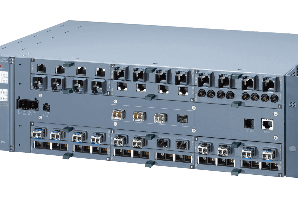 Коммутаторы SCALANCE XR-500 позволяют формировать линейные, кольцевые и звездообразные структуры Industrial Ethernet с электрическими и оптическими каналами связи. Четыре встроенных слота SFP+ могут опционально комплектоваться съемными приемопередатчиками SFP+ (10 Гбит/с) или SFP (1000 Мбит/с). До 12 слотов коммутатора могут комплектоваться необходимым набором 4-канальных интерфейсных субмодулей с электрическими и/ или оптическими интерфейсами. Поддержка обмена данными со скоростью до 10 Гбит/с позволяет использовать эти приборы в качестве основного коммутатора Industrial Ethernet и в качестве концентратора сети заводского уровня (возможно резервированное подключение).