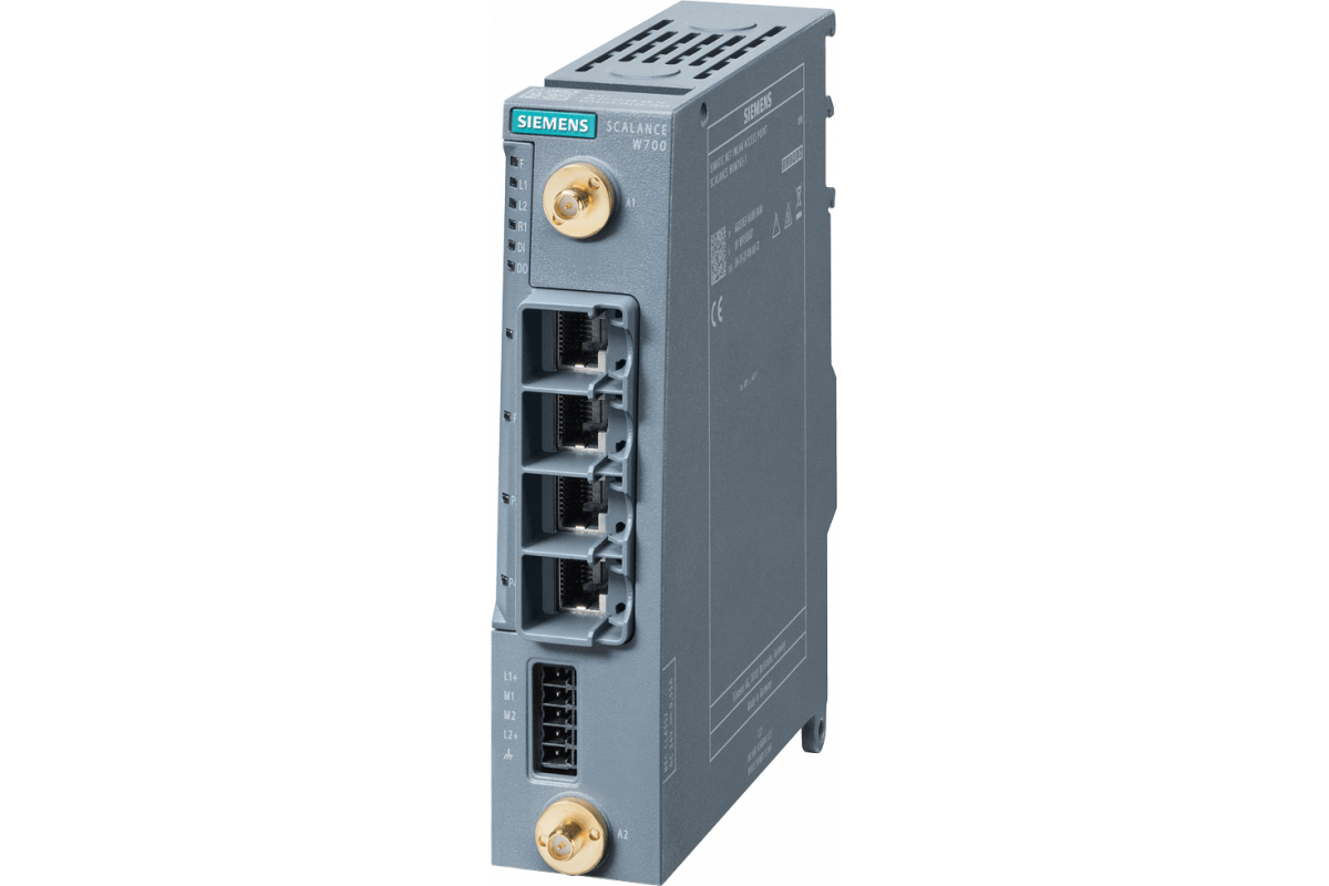 Клиент IWLAN, SCALANCE WUM763-1, 1 радио, 2.4/5 ГГц 2 соединения R-SMA, поддержка iFeatures через CLP, IEEE 802.11ax (Wi-Fi 6), 1201 Мбит/с (брутто) 4 порта RJ45x10/100/1000 Мбит/с, резервный 24 В постоянного тока, клеммная колодка, IP30, -30..+60°C, слот CLP соблюдайте национальные допуски! CERT ID: MSAX-W1-RJ-E2-NO FCC ID: LYHMSAXV1 эксплуатация за пределами США/Израиля комплект поставки: крышка слота CLP, крышки антенных соединений, 1х клеммная колодка