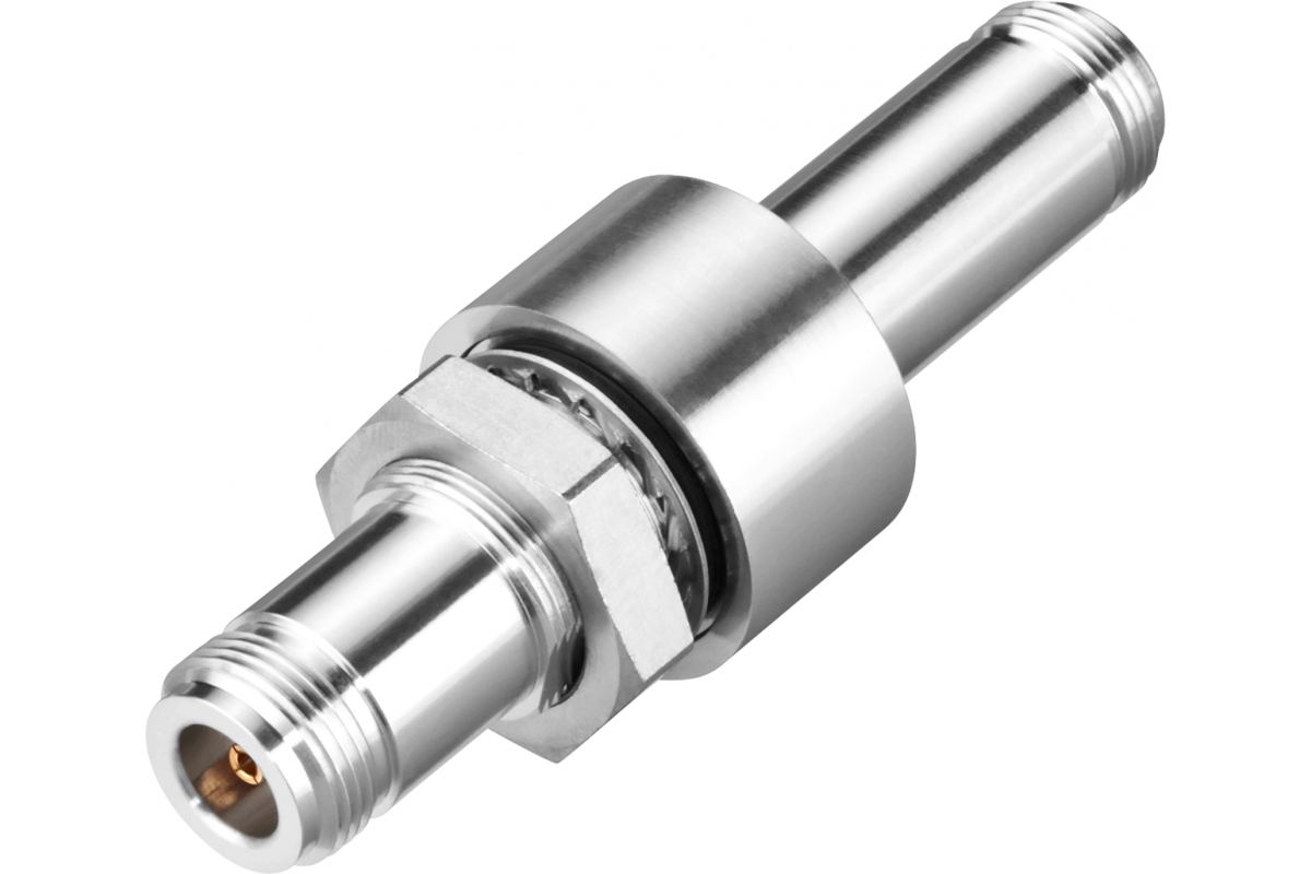 Молниеотвод LP798-2N, Элемент молниезащиты с соединением N/N Female/female, IP65 (-40...+85 °C), 2 ... 6 ГГц, с четвертьволновой технологией для антенн SCALANCE W, компактная инструкция в виде печатной копии на немецком/английском языке.