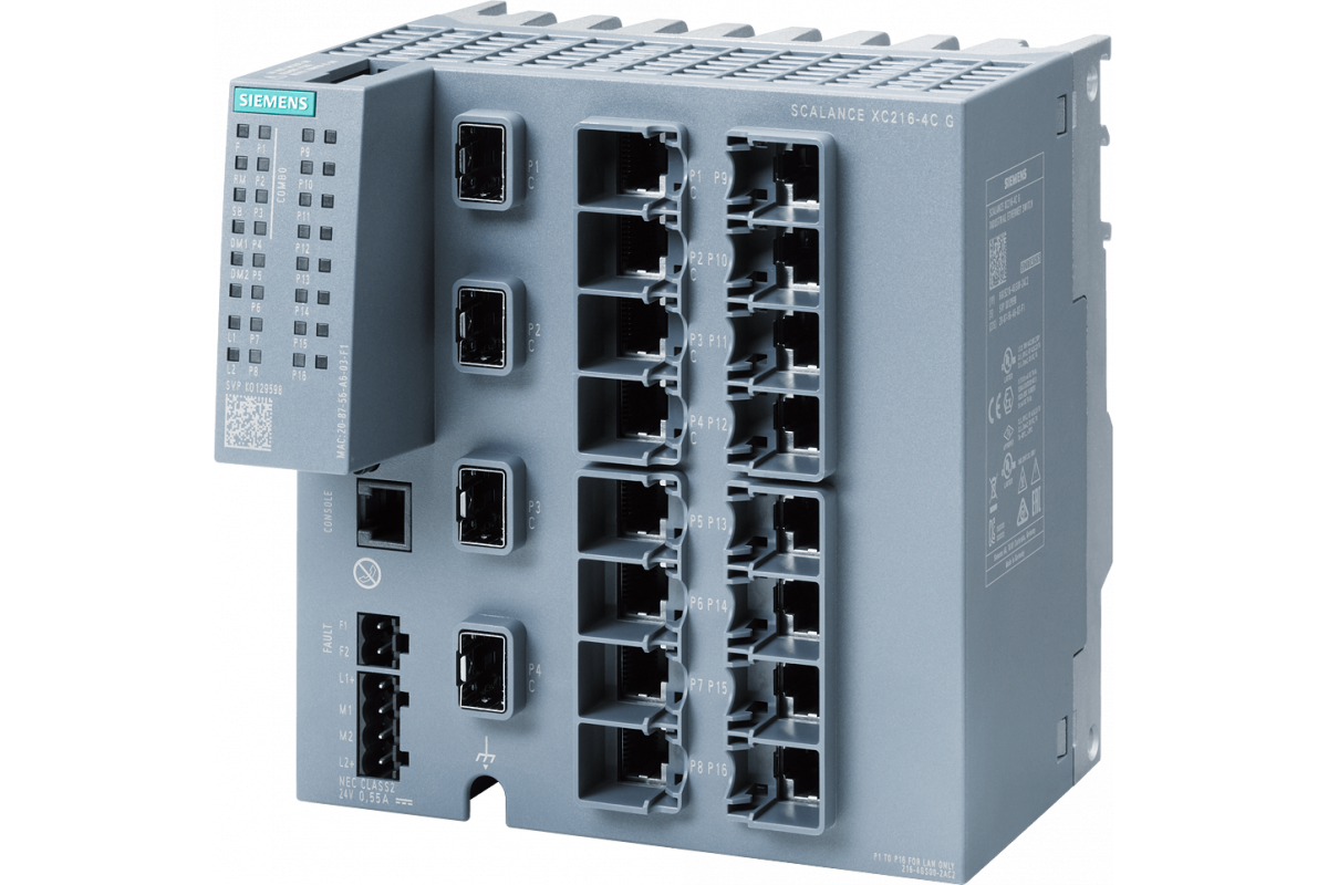 SCALANCE XC216-4C С (Е / IP) промышленный управляемый IE коммутатор 2-го уровня; поддержка Full Gigabit; 12x электрических RJ45 портов 10/100/1000 Мбит/c; 4x комбинированных порта 1000 Мбит/с (может быть использован либо SFP-модуль 1000 Мбит/с или электрический RJ45 порт 10/100/1000 Мбит/с); 1x консольный порт; светодиодная индикация; резервированное питание 24В; расширенный температурный диапазон (от -40°C до +70°C); монтаж на DIN-рейку/S7 профили/стену; функции резервирования; офисные функции (RSTP, VLAN, .. .); PROFINET IO-устройство;(*)