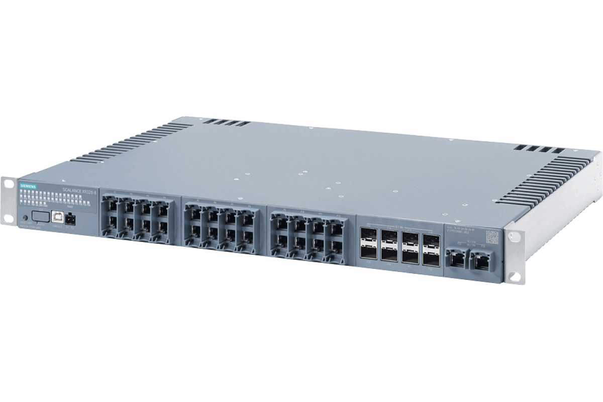 SCALANCE XR326-8; управляемый уровень 2; Коммутатор IE, 19-дюймовая стойка; 24 порта RJ45 100/1000 Мбит/с; 2 порта RJ45 1G/2,5G/5G/10 Гбит/с, 8 портов SFP+ 1G/10G; светодиодная диагностическая панель; контакт сигнализации об ошибке; кнопка выбора/установки; устройство ввода-вывода PROFINET; управление сетью; встроенный менеджер резервирования; офисные функции (RSTP, VLAN, IGMP...); CLP входит в комплект поставки; блок питания 230 В переменного тока;