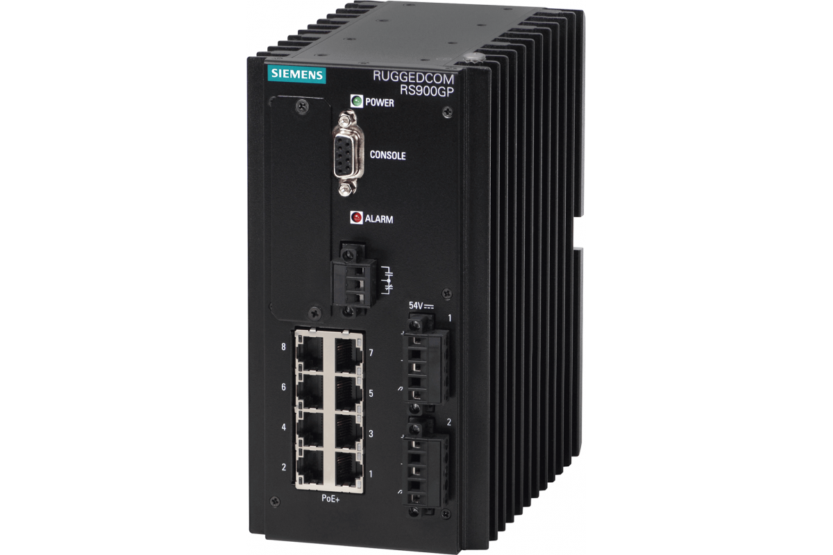 RUGGEDCOM RS900GP - полностью управляемый коммутатор Ethernet коммунального класса, обеспечивающий два оптических или медных порта Gigabit Ethernet и 8 медных портов Fast Ethernet; питание по Ethernet, 802.3at 128-битное шифрование; 8 портов Fast Ethernet (10/100BaseTX) все внешние 802.3af/802.3at совместимый PoE; До 2 портов оптоволоконного Gigabit Ethernet (100/1000BaseX); До 2 портов 10/100/1000 BaseTX Несколько типов разъемов оптоволокна (LC, SC, ST, SFP)