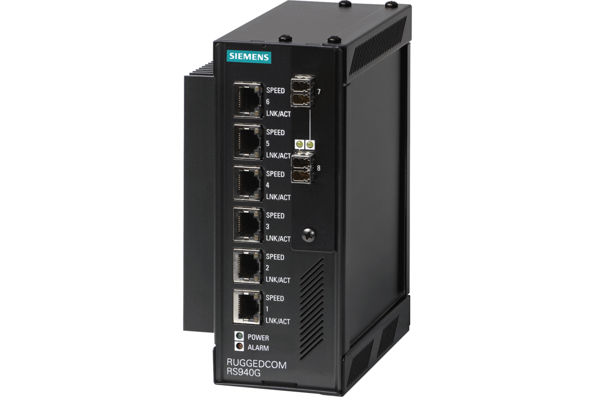 RUGGEDCOM RS940G - это промышленно защищенный, полностью управляемый коммутатор Ethernet, обеспечивающий 6 или 8 портов Gigabit Ethernet. 6 трехскоростных медных портов 10/100/1000BaseTX являются стандартными; можно добавить 2 гигабитных оптоволоконных или медных порта. 128-битное шифрование;