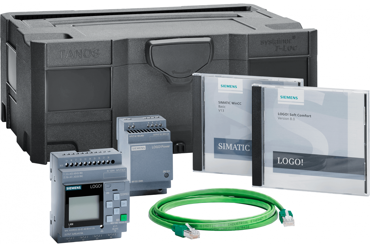 6ED1057-3BA01-0AA8 Стартовый набор LOGO! 12/24RCE с LOGO! 12/24RCE, LOGO! SOFT Comfort V 8.2, WinCC Basic, блоком питания, отвёрткой в системном контейнере Tanaos Systainer