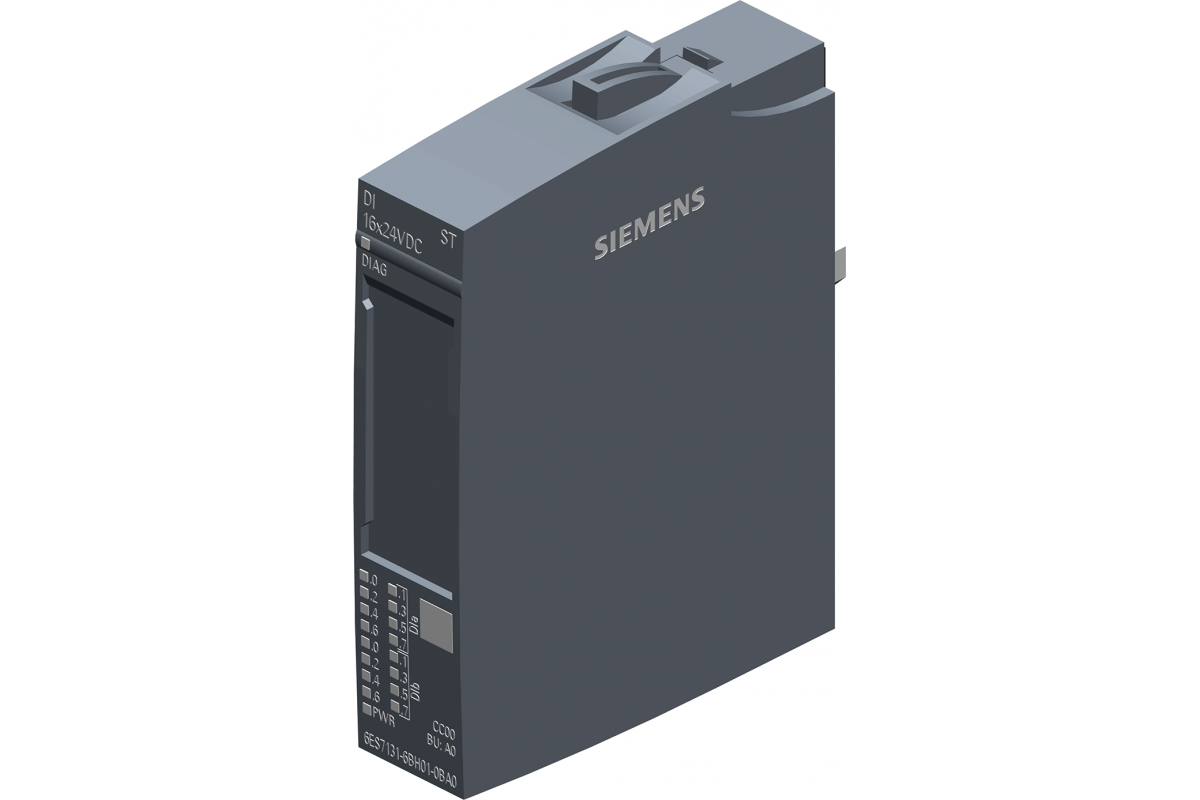 SIMATIC ET 200SP, модуль дискретных входов, DI 16x 24V DC ST, со стандартными функциями, тип 3 (IEC 61131), вход PNP, (sink, P-reading), упаковка из 10 шт., для установки на базовый блок типа A0, цветовой код CC00, входная задержка 0,05..20 мс, диагностика обрыва провода, диагностика напряжения питания