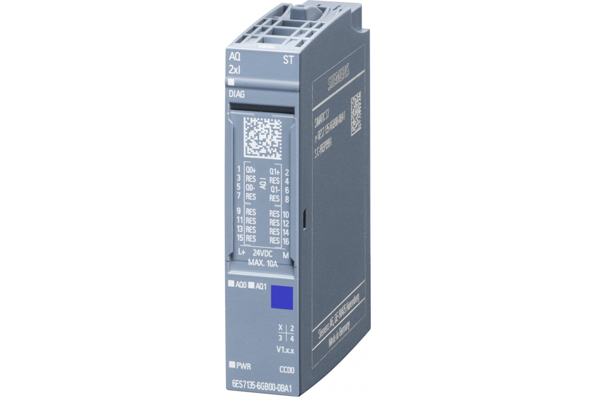 Simatic ET 200Sp, модуль аналогового ввода, aq 2x i st, ток, стандартный, упаковка по 1 шт., для установки на базовые блоки типа a0, a1, цветовой код cc00, диагностика модуля, 16 бит