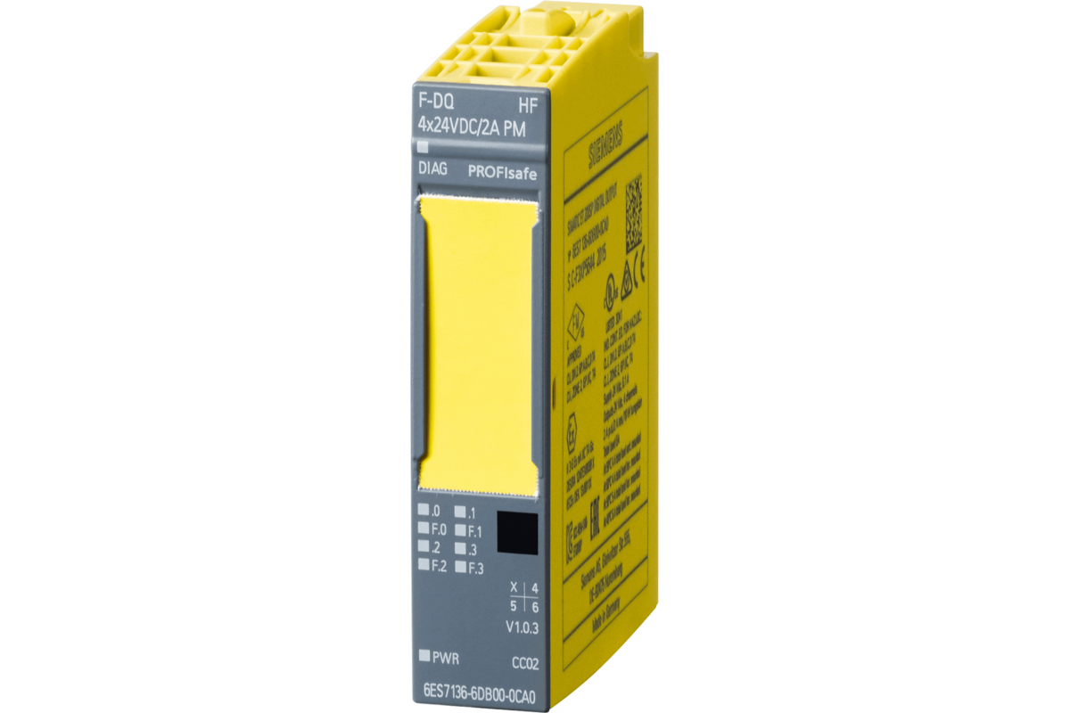 Simatic dp, электронный модуль для et 200sp, 4 f-dq profisafe, =24 в/2 а, 15 мм шириной, модуль дискретных выходов для систем повышенной безопасности до pl e (iso 13849-1)/ sil3 (iec 61508).