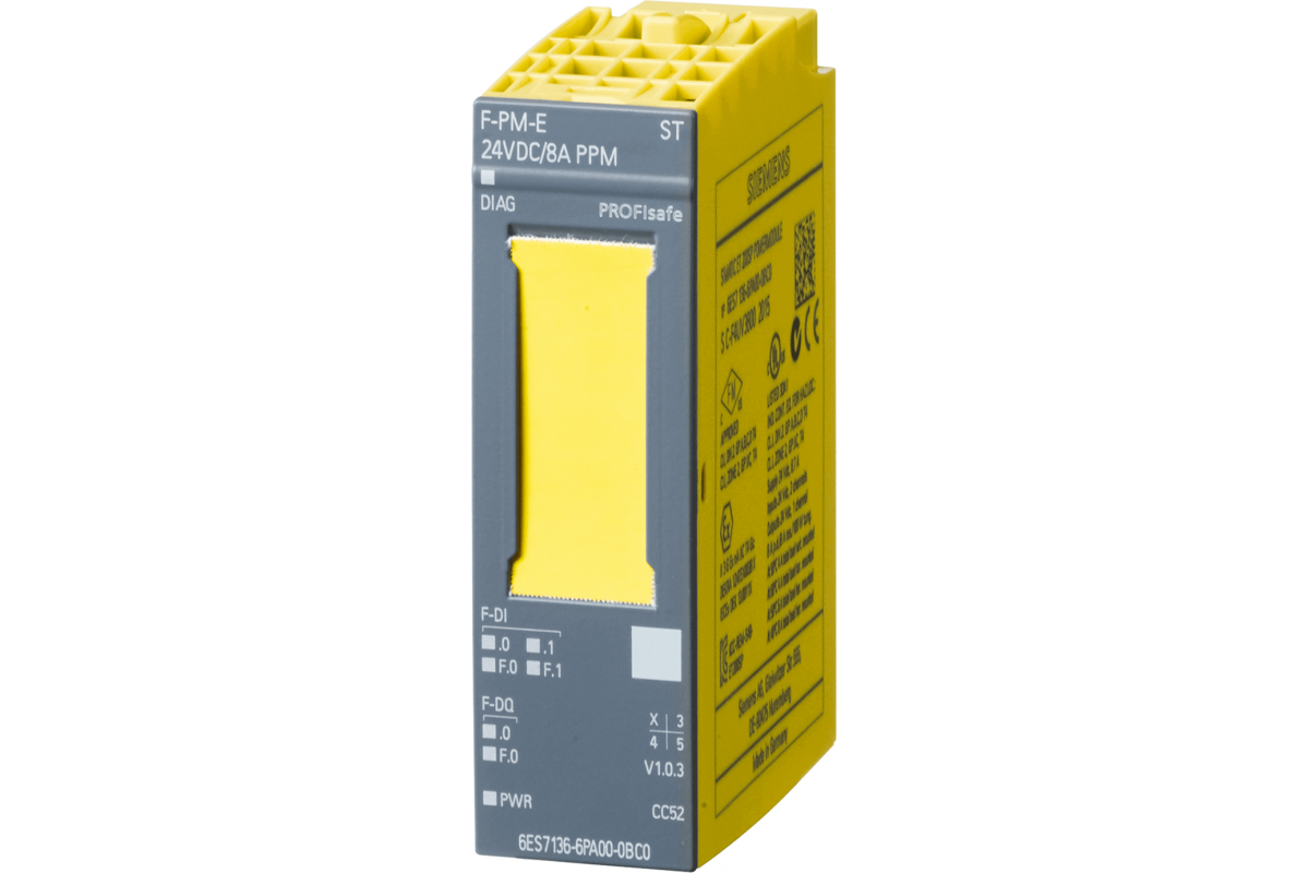 SIMATIC DP, МОДУЛЬ ПИТАНИЯ F-PM-E PPM PROFISAFE, ДЛЯ ET 200SP, =24 В, FAIL-SAFE ПЕРЕКЛЮЧЕНИЕ DQ И F-DQ ДО PL D / SIL2 ИЛИ PL E / SIL3, 2 ДИСКРЕТНЫХ FAIL-SAFE ВХОДА И 1 ДИСКРЕТНЫЙ FAIL-SAFE ВЫХОД PPM