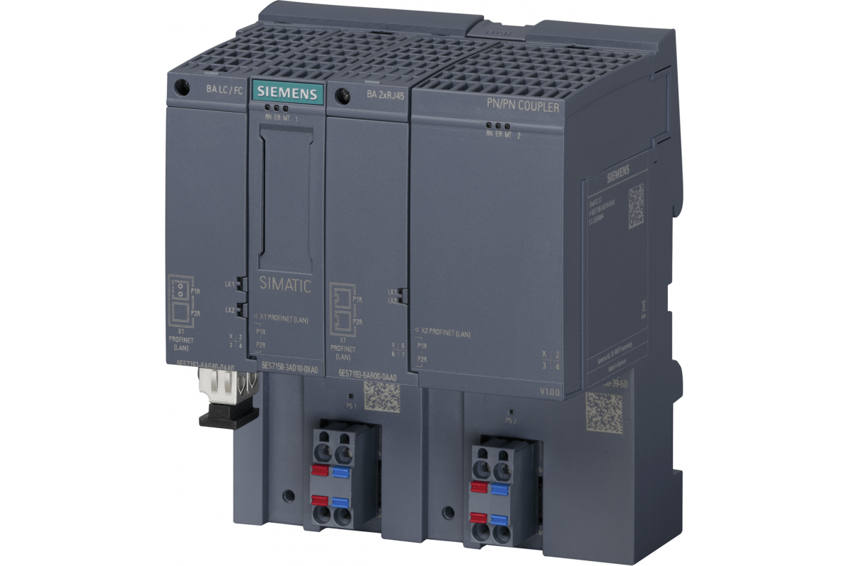 SIMATIC PN/PN Coupler, шлюз для детерминированного обмена обмена данных между макс.4 PN-Controller в подсети, а также между двумя подсетями, обмен данными PROFIsafe, I/O-, MSI-, MSO- и data record коммуникации, резервированное питание, подключение к PROFINET через шинный адаптер SIMATIC