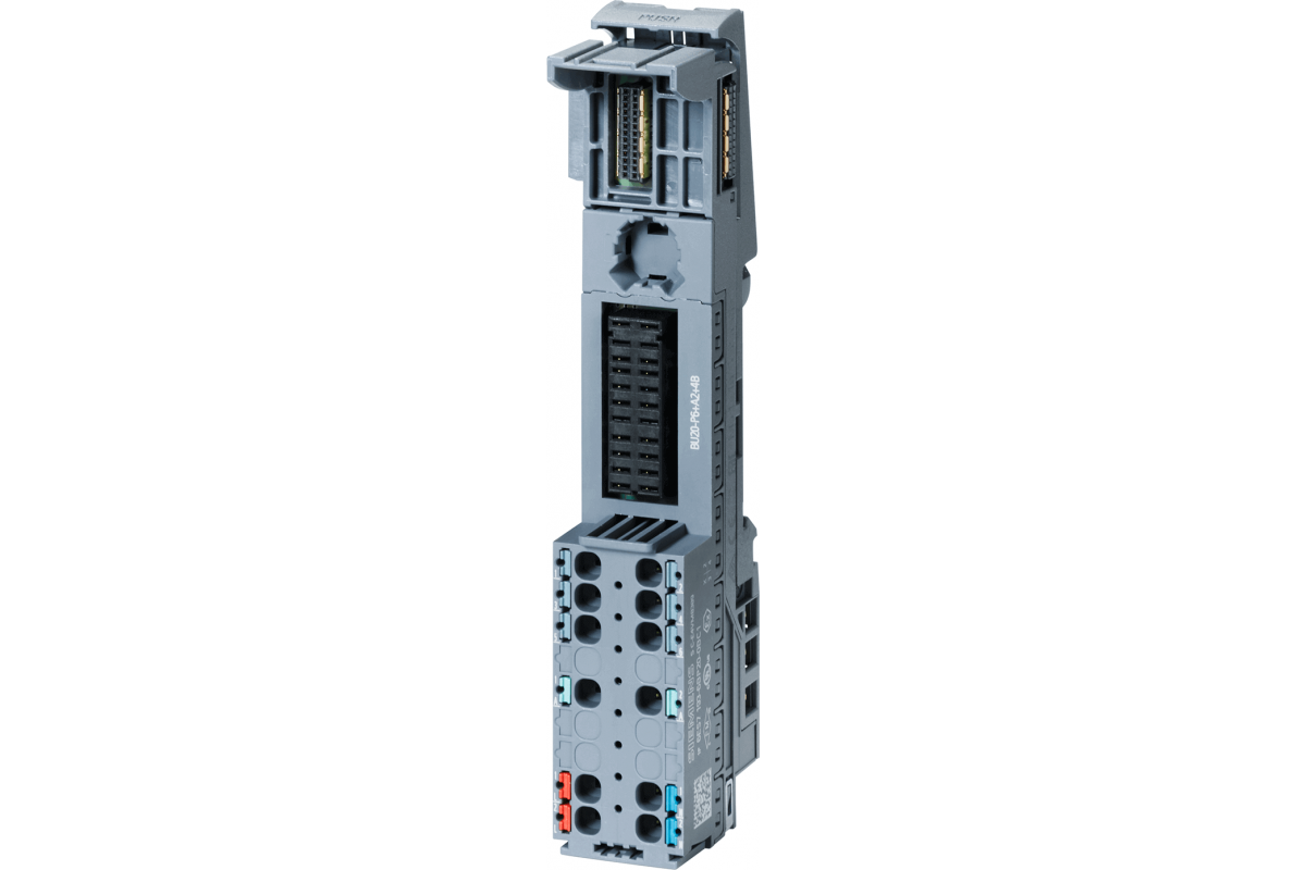 SIMATIC ET 200SP, БАЗОВЫЙ БЛОК BU20-P6+A2+4B, ТИП С1, КЛЕММЫ PUSH-IN, 2 ДОП. КЛЕММЫ, ПОДКЛЮЧЕНИЕ К СУЩ. НАГРУЗОЧНОЙ ГРУППЕ (БАЗОВОГО БЛОКА СЛЕВА), ШXВ: 20ММX117ММ