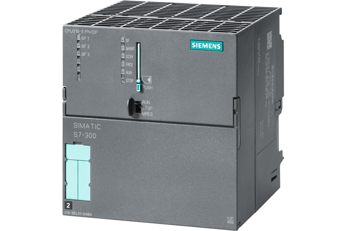 SIMATIC S7-300 CPU 319-3 Pn/dp, ЦПУ с 2 МБайтами рабочей памяти, 1. интерфейс mpi/dp 12Мбит/с, 2. интерфейс dp-master/slave, 3. интерфейс ethernet PROFINET, с 2х-портовым коммутатором, необходима карта памяти mmc