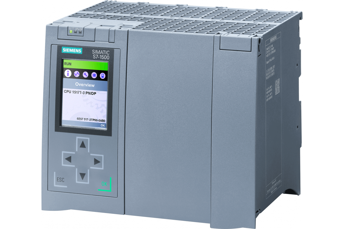 SIMATIC S7-1500T, CPU 1517T-3 PN/DP,Центральный процессор с рабочей памятью 3 МБ для программы и 8 МБ для данных, 1-й интерфейс: PROFINET IRT с 2-портовым коммутатором, 2-й интерфейс, Ethernet, 3-й интерфейс, PROFIBUS, производительность 2 нс, требуется карта памяти SIMATIC