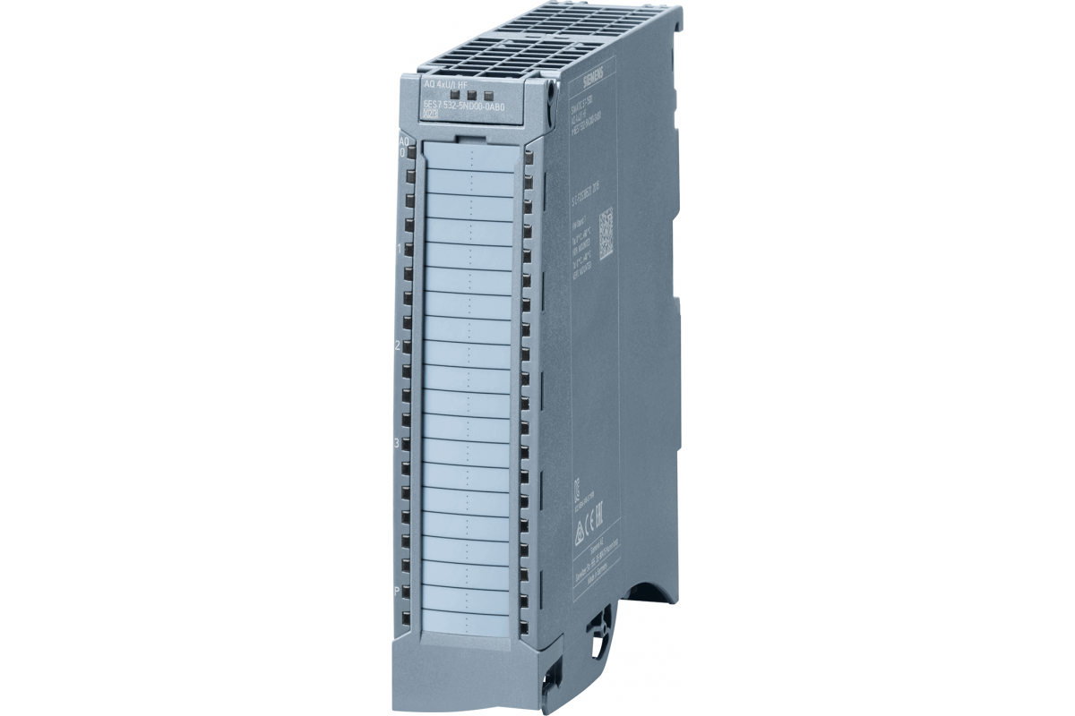 6ES7532-5ND00-0AB0 SIMATIC S7-1500, Модуль аналоговых выходов AQ 4 X U/I HF, разрешение 16 бит, точность 0,1%, 4 канала (напряжение/ток) в группе из 1, напряжение общей точки:~30 В/=60 В, диагностика, замещающее значение, включая вводной элемент, зажим и клемму заземления