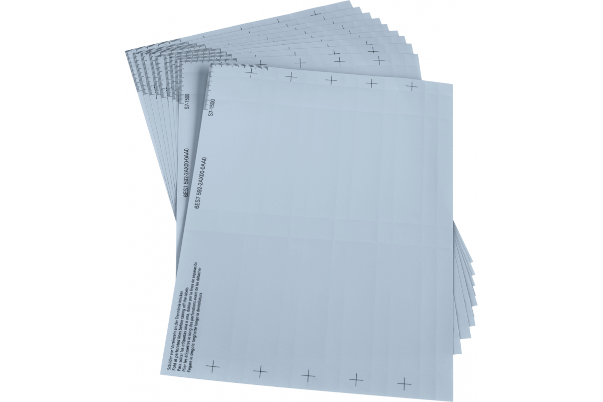 6ES7592-2AX00-0AA0 SIMATIC S7-1500, МАРКИРОВОЧНЫЕ ЛИСТЫ ДЛЯ МОДУЛЕЙ S7-1500 ШИРИНОЙ 35 ММ, ЦВЕТ: АЛЮМИНИЕВО-СЕРЫЙ, МАТЕРИАЛ: МЕМБРАНА, ПЕРФОРИРОВАНЫ, ДЛЯ ПРИМЕНЕНИЯ СО СТАНДАРТНЫМИ ЛАЗЕРНЫМИ ПРИНТЕРАМИ, 10 ЛИСТОВ ПО 10 МЕТОК КАЖДЫЙ В УПАКОВКЕ - ДОСТАТОЧНО ДЛЯ 100 МОДУЛЕЙ