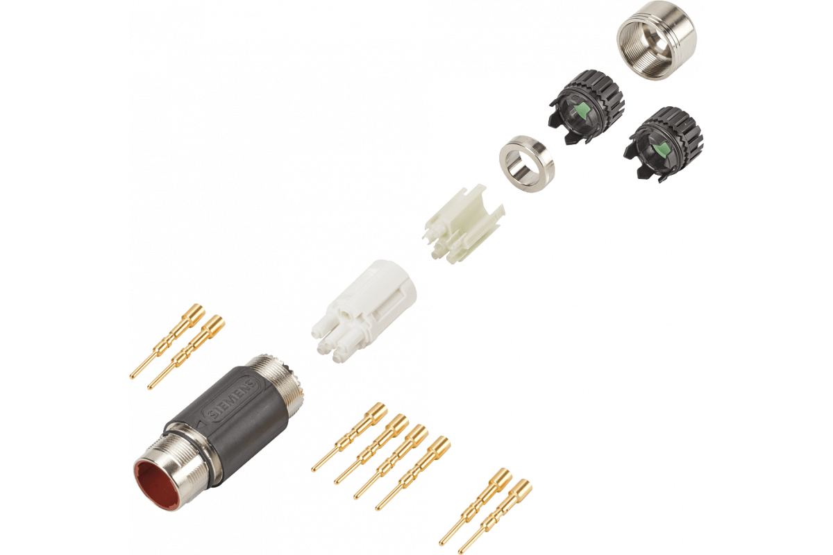 силовой разъем Sz. 1 тип: 6FX2003-0LA00 6-полюсный штырь, наружная резьба 1x 6-полюсный изолятор 8x контактов (1-2.5 мм2) 2x кабельная клемма для кабеля диаметром: 7.5 - 12 / 9 - 15
